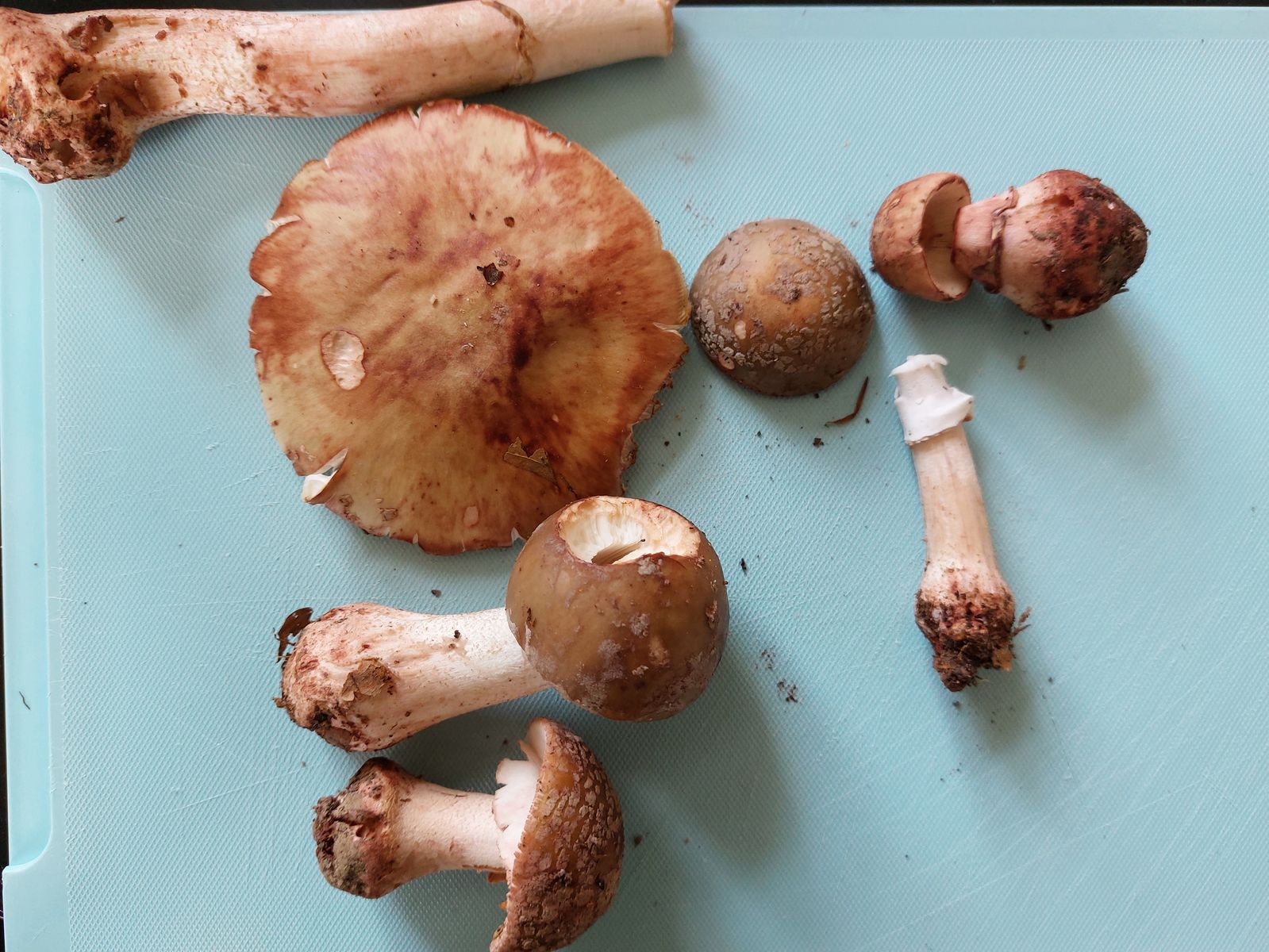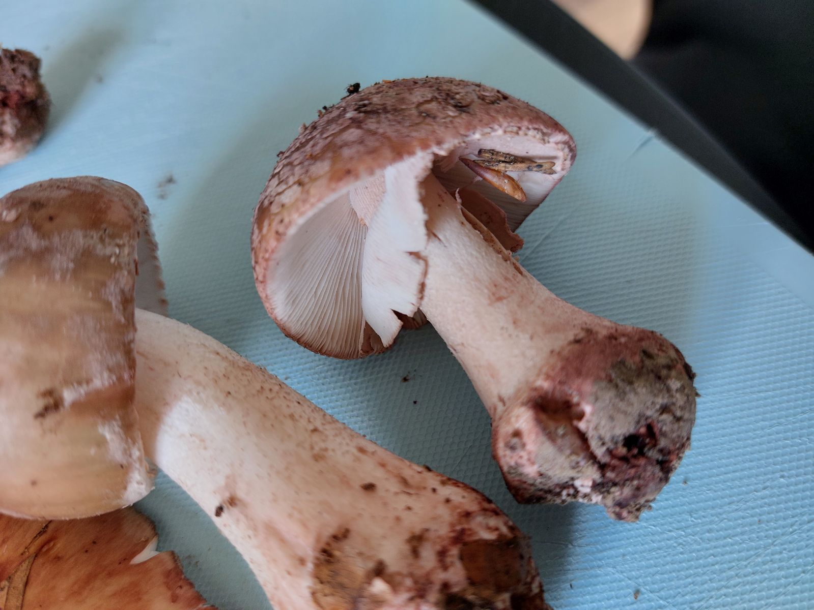 Dank eurer tollen Hilfe habe ich mich, nach Tagen des Sichtens und Studieren der Merkmale, jetzt auch mal an die Perlpilze getraut. Für mich ist der Fall eigentlich klar. Deutliche rote Färbung an den Fraßstellen und am Hut, geriefter Ring, keine abgesetzte Knolle und hautfarbenes Sporenpulver. Trotzdem möchte ich gerne noch eure Meinung hören.
