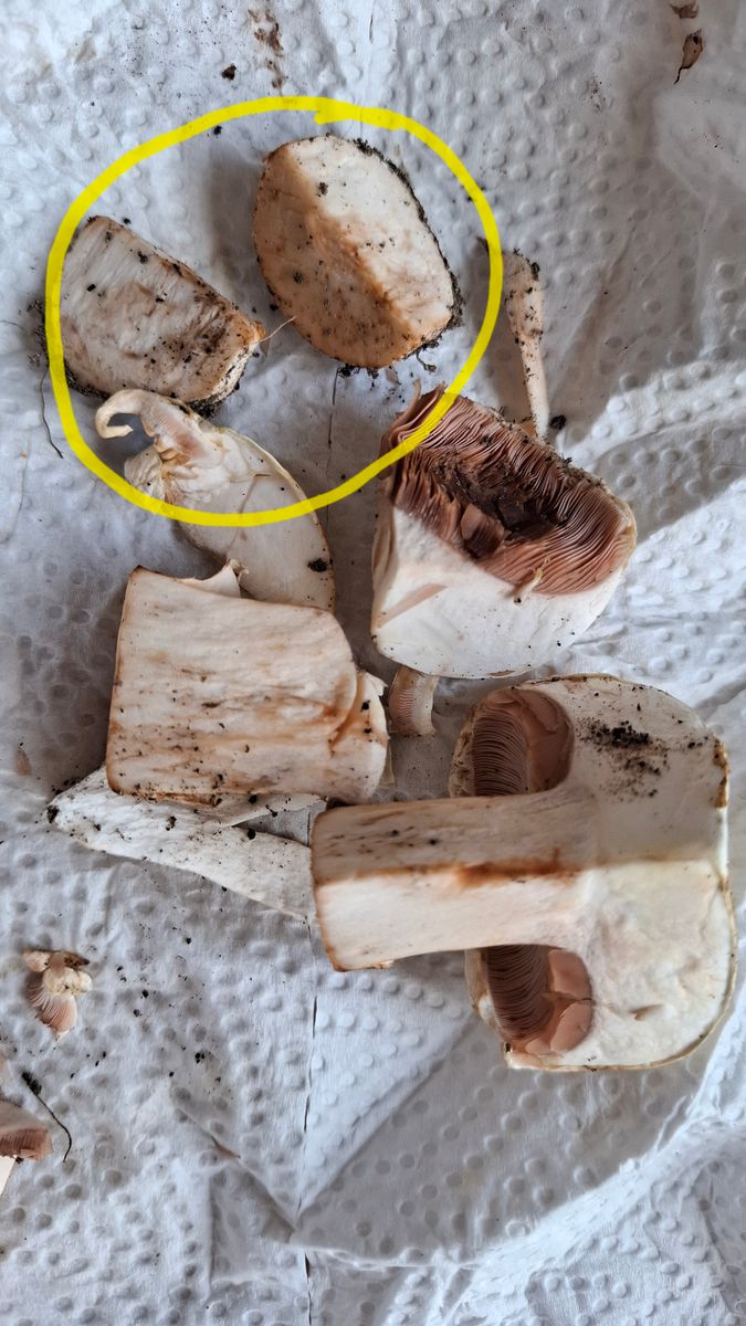 Nach meiner Ansicht keinerlei Verfärbungen im Schnitt, auch nicht an der Stielbasis.