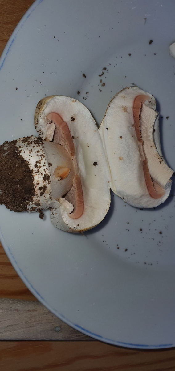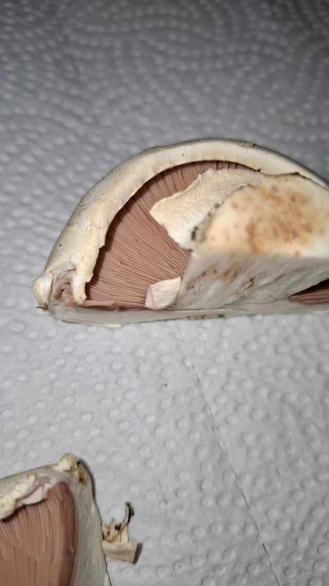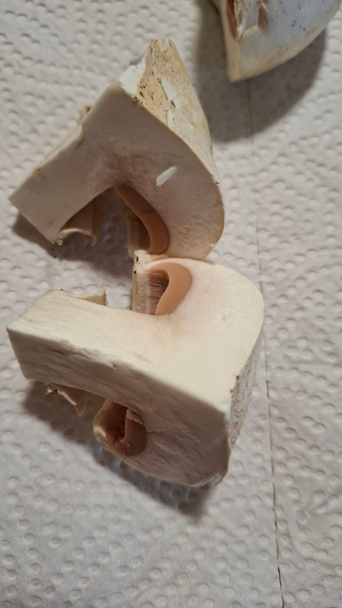 Nach meiner Ansicht keinerlei Verfärbungen im Schnitt, auch nicht an der Stielbasis.