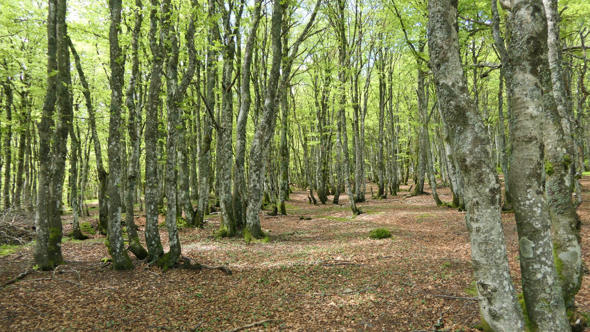 Hier, in niederschlagsreicher Lage, sind die Rotbuchenstämme dicht mit Epiphyten bawachsen.
