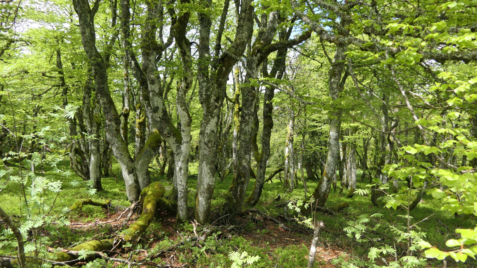 Bild 3 Flechtenüberwachsene Rotbuchenstämme - so sehen zuhause nur die Hainbuchen aus...