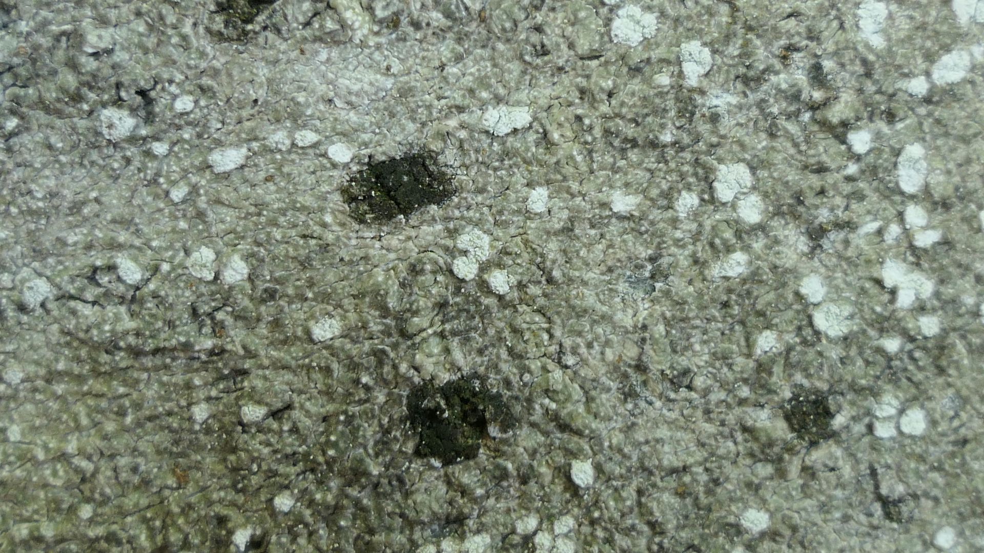 Bild 4 Lepra albescens mit gezontem Vorthallus und weißen, flachen Soralen auf grau-grünem bis grün-grauem Thallus.