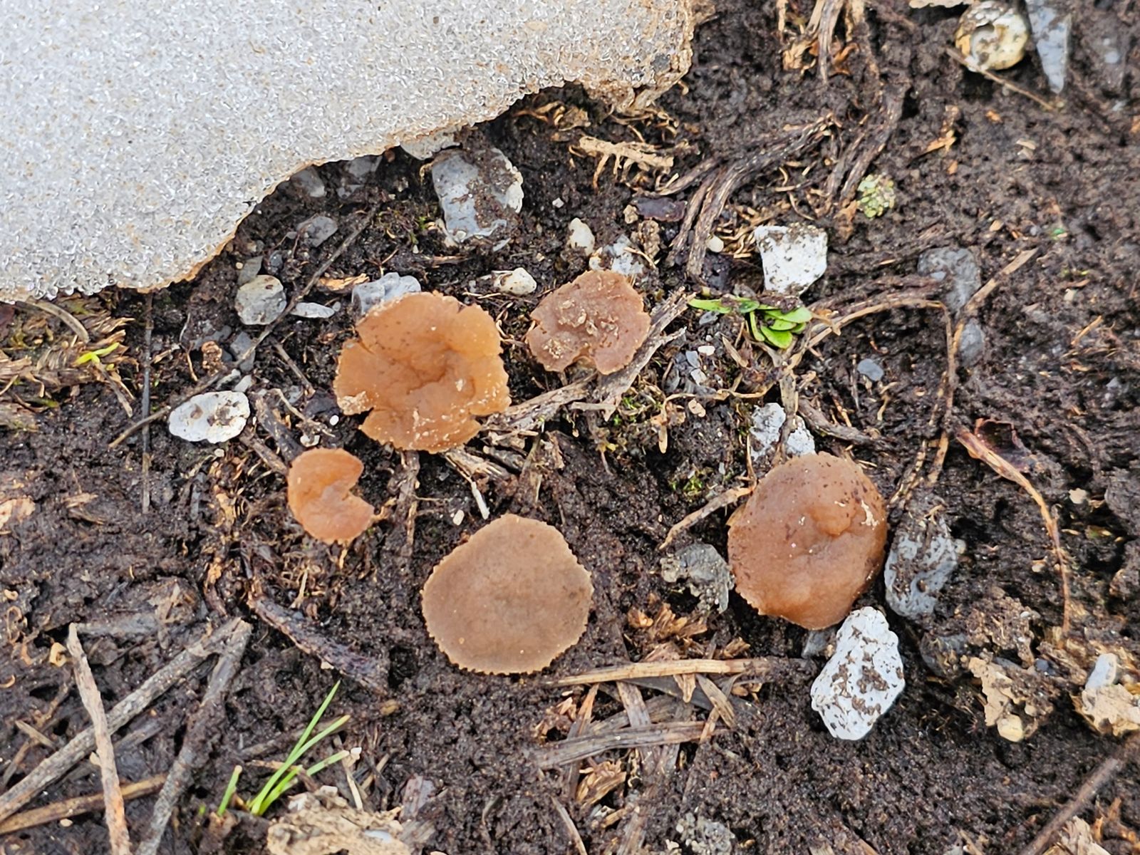 Diese kleinen Becherlinge wachsen gerne direkt neben dem Schnee: Peziza nivalis.