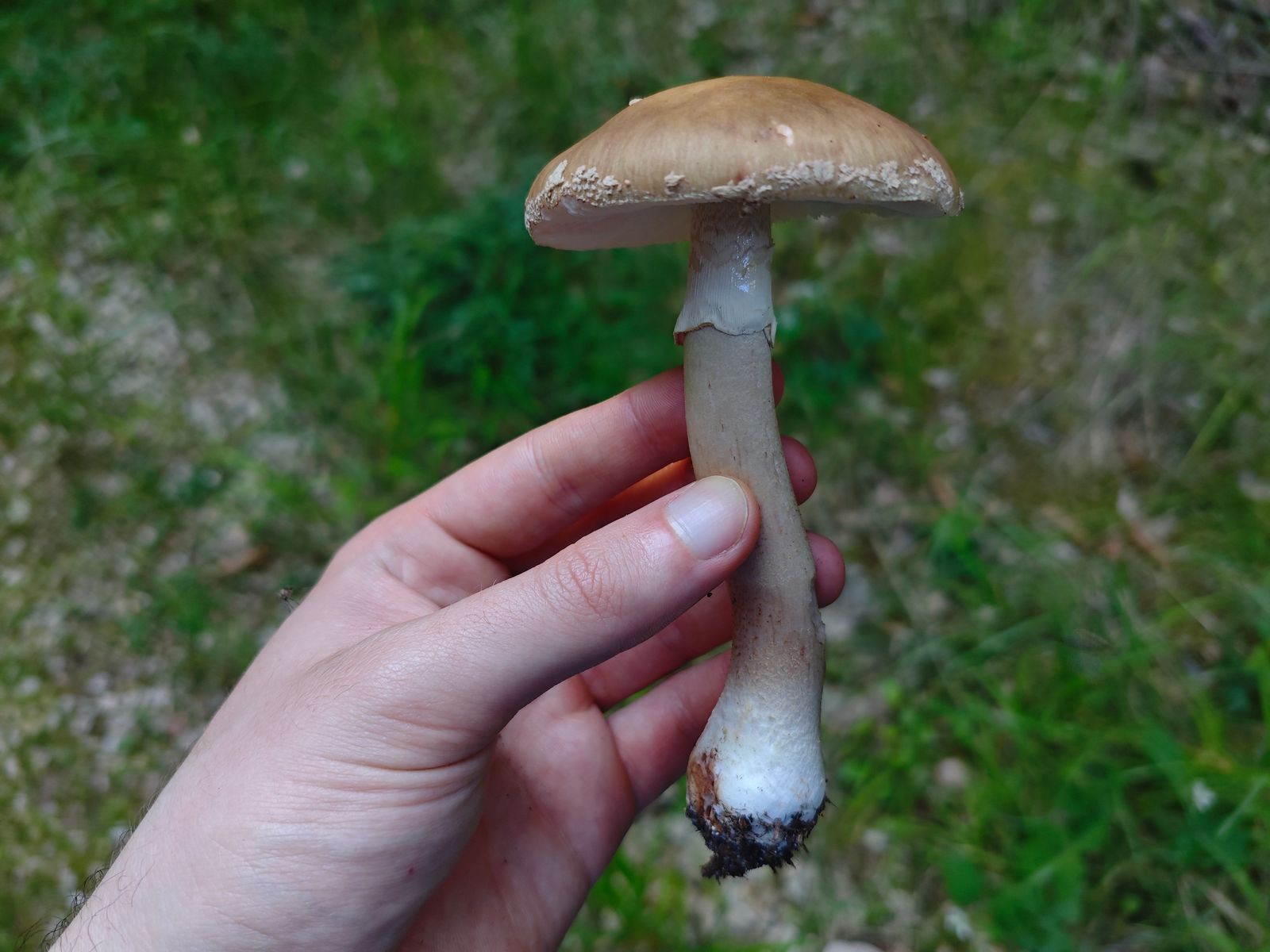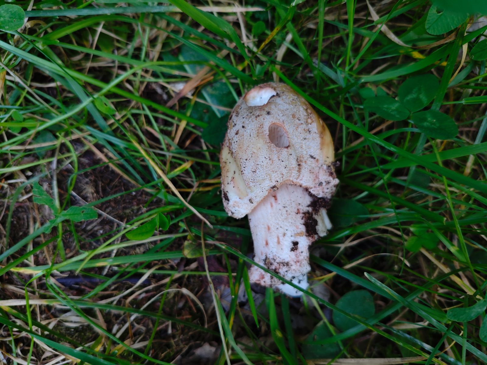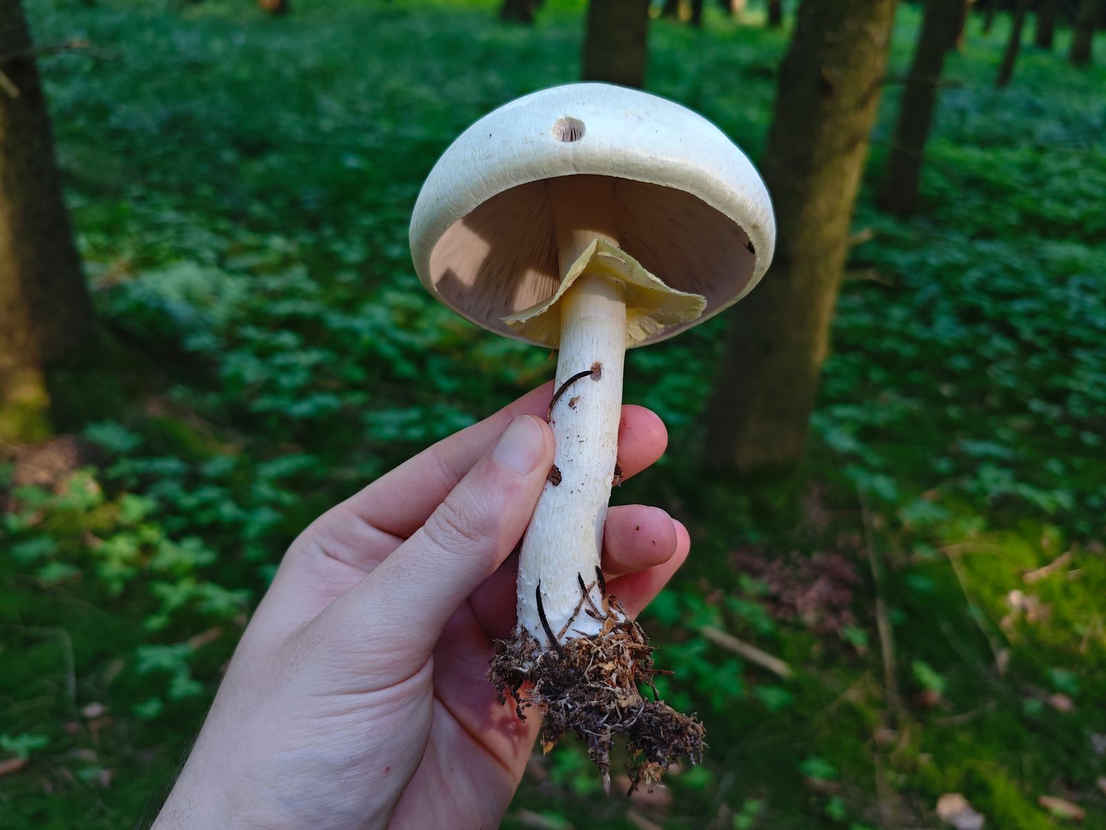 Hier dachte ich zunächst an den kleinen Waldchampignon, der an der Stelle auch vorkommt. Bei genauerer Betrachtung allerdings kein Röten und stattdessen Gilben an der Stielbasis. Ich verbuche das mal als Rebhuhn Champignon?