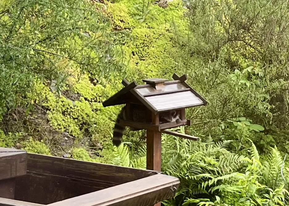 Letzten Sonnabend marodierte ein Waschbär im Futterhäuschen.