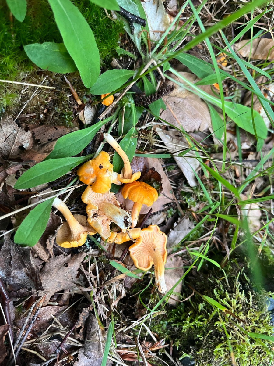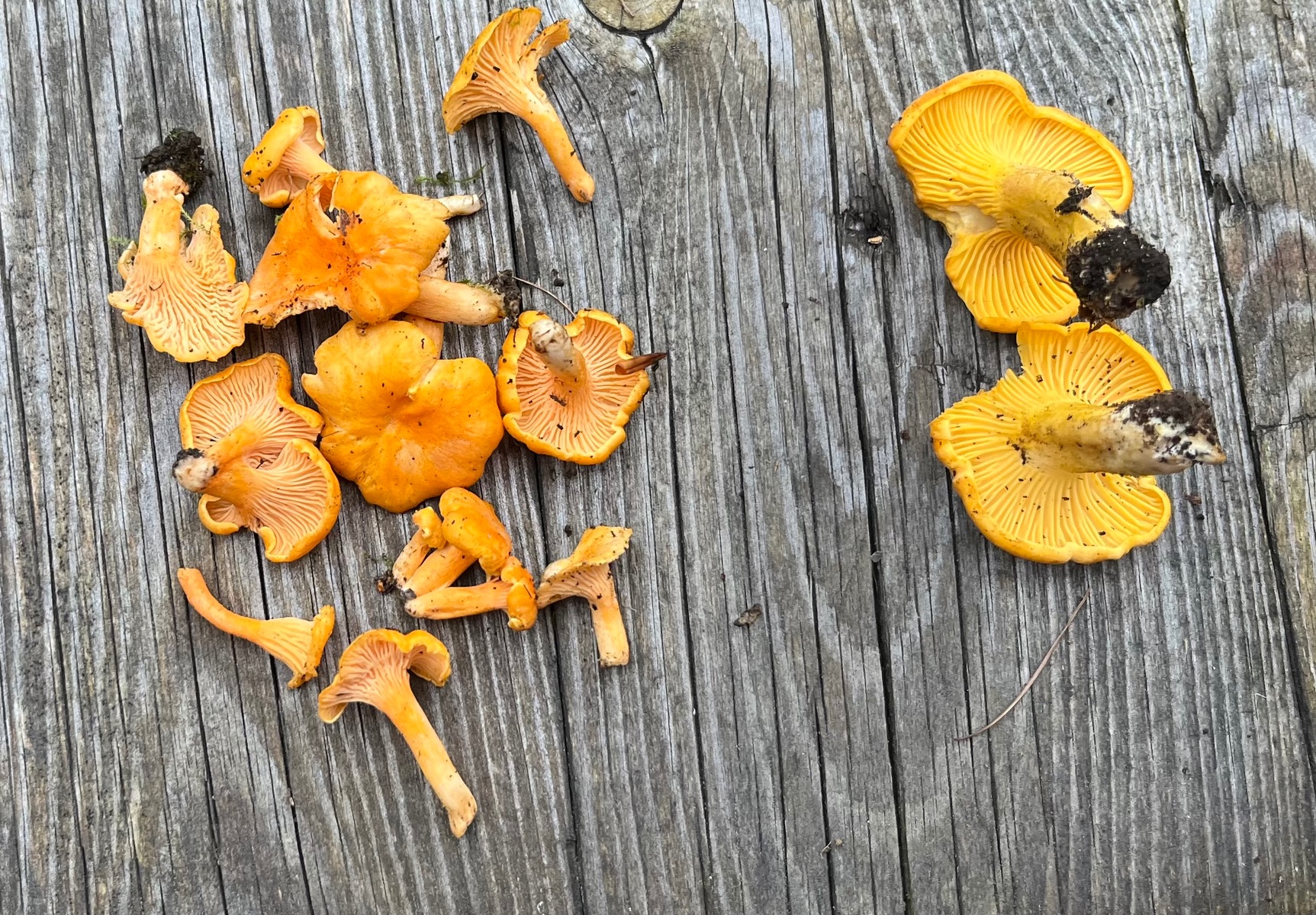 Da wachsen auch immer ein paar Echte Pfifferlinge. Für den Vergleich hab ich sie mal nebeneinander gelegt.