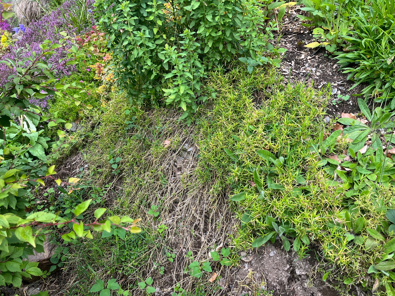 Diese Kahlstelle in meinem Teppichphlox habe ich einem Falschen Mehltau zu verdanken, der nach Angaben von boccaccio bislang nur bei Sankt Petersburg kartiert wurde. Ein Erstfund für Deutschland also, aber auf den Phytoterrorangriff hätte ich gern verzichtet. Nun ja, das Leben ist halt kein Wunschkonzert🥴, nicht mal im wilden Garten.