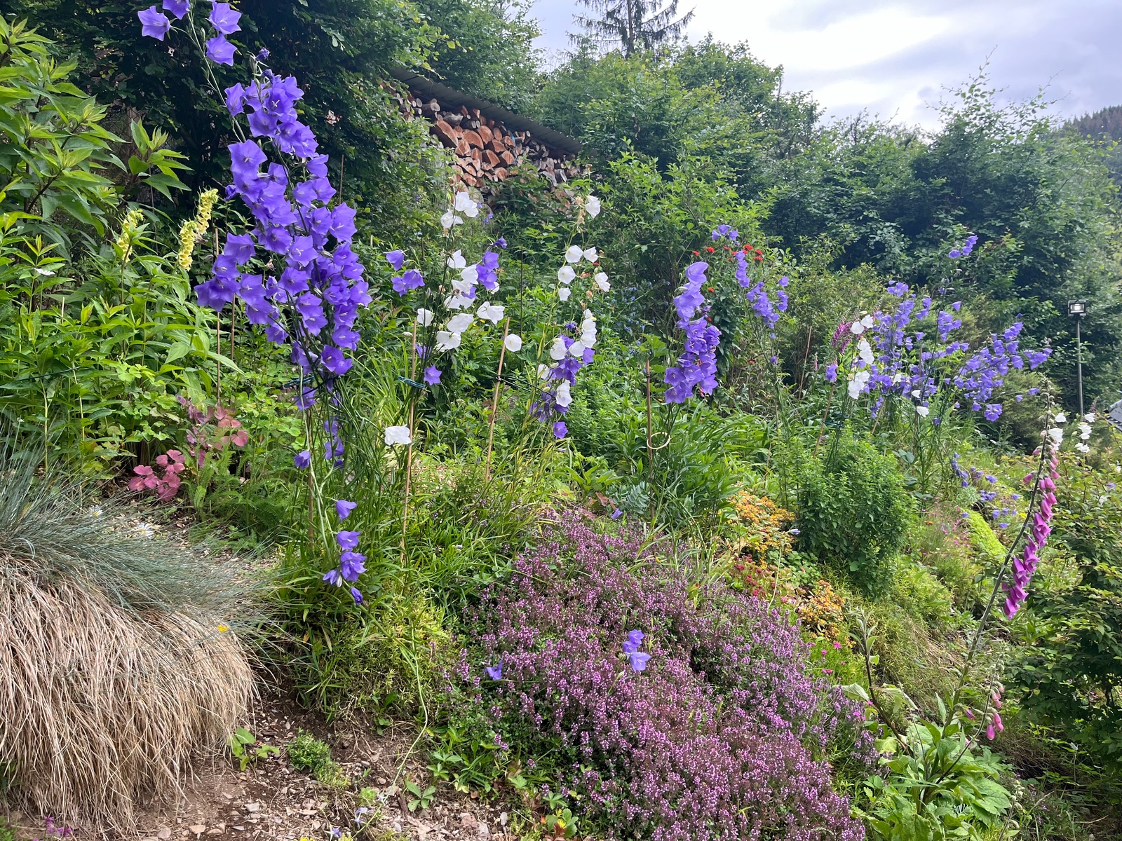 Momentaufnahme vom Hang hinterm Haus. Bis auf den Teppichphlox machen alle, was sie sollen. Ich bin schon neugierig, welche Überraschungen die nächste Woche bereithält.