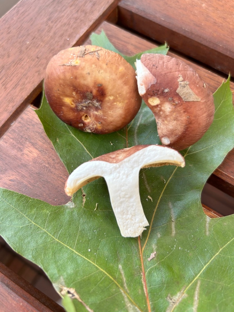 Nr. 1 - Geruch: neutral bis pilzig // Hutfarbe: bräunlich-lila // Huthaut: teilweise abziehbar, darunter Richtung Mitte auch leicht Lilafärbung (nicht verkürzt)