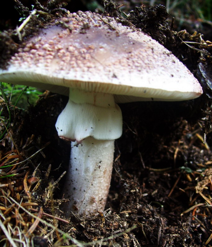 Perlpilz rötet, wenn man ihn aufschneidet, Huthaut ist abziehbar - Pantherpilz nicht!