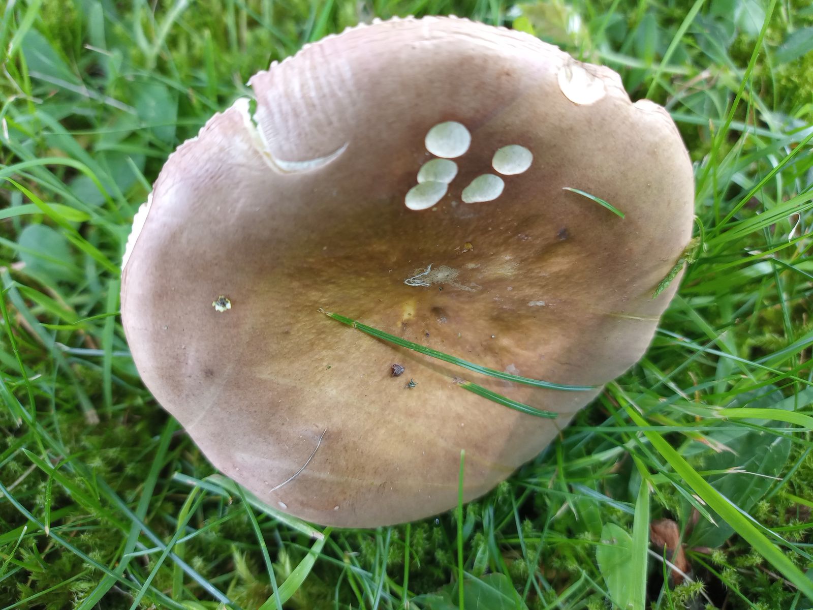 Ich vermute hier Brauner Ledertäubling (Russula Integra). Kann das hinkommen, gibt es andere mögliche Kandidaten? Ist es naiv, mit diesen Angaben eine Antwort zu erhoffen?