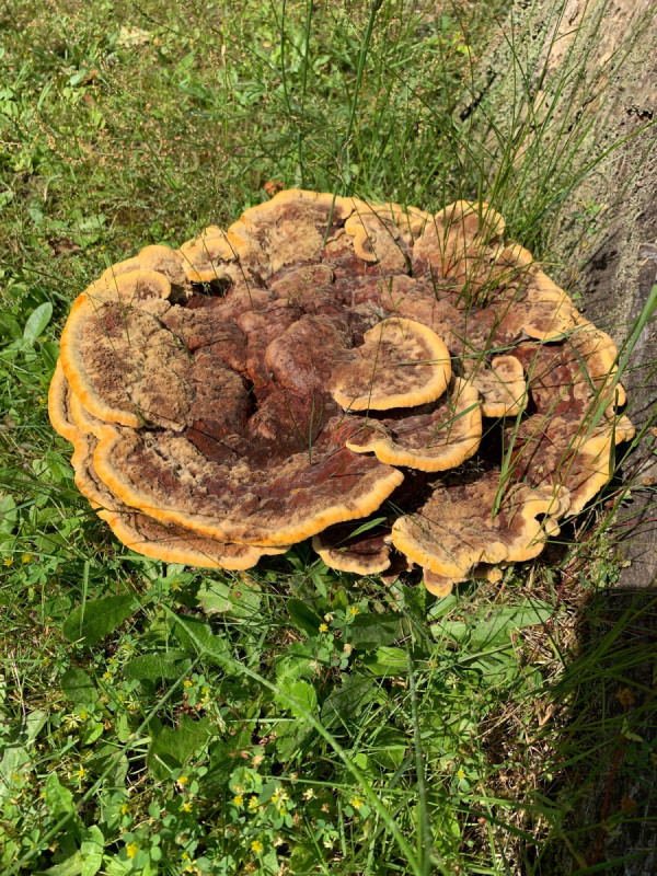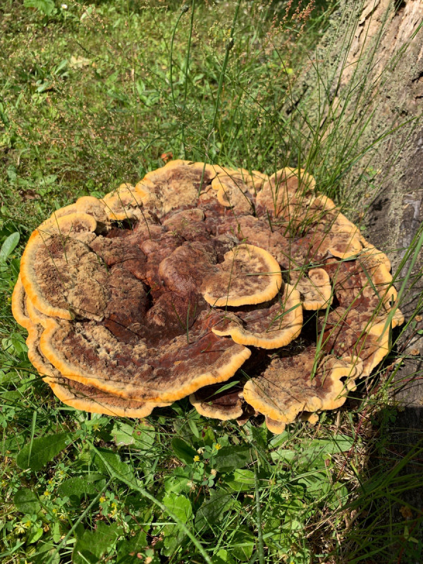 Bei mir im Garten am Fuße eine alten Baumstumpfes wächst ein kapitaler Pilz.
