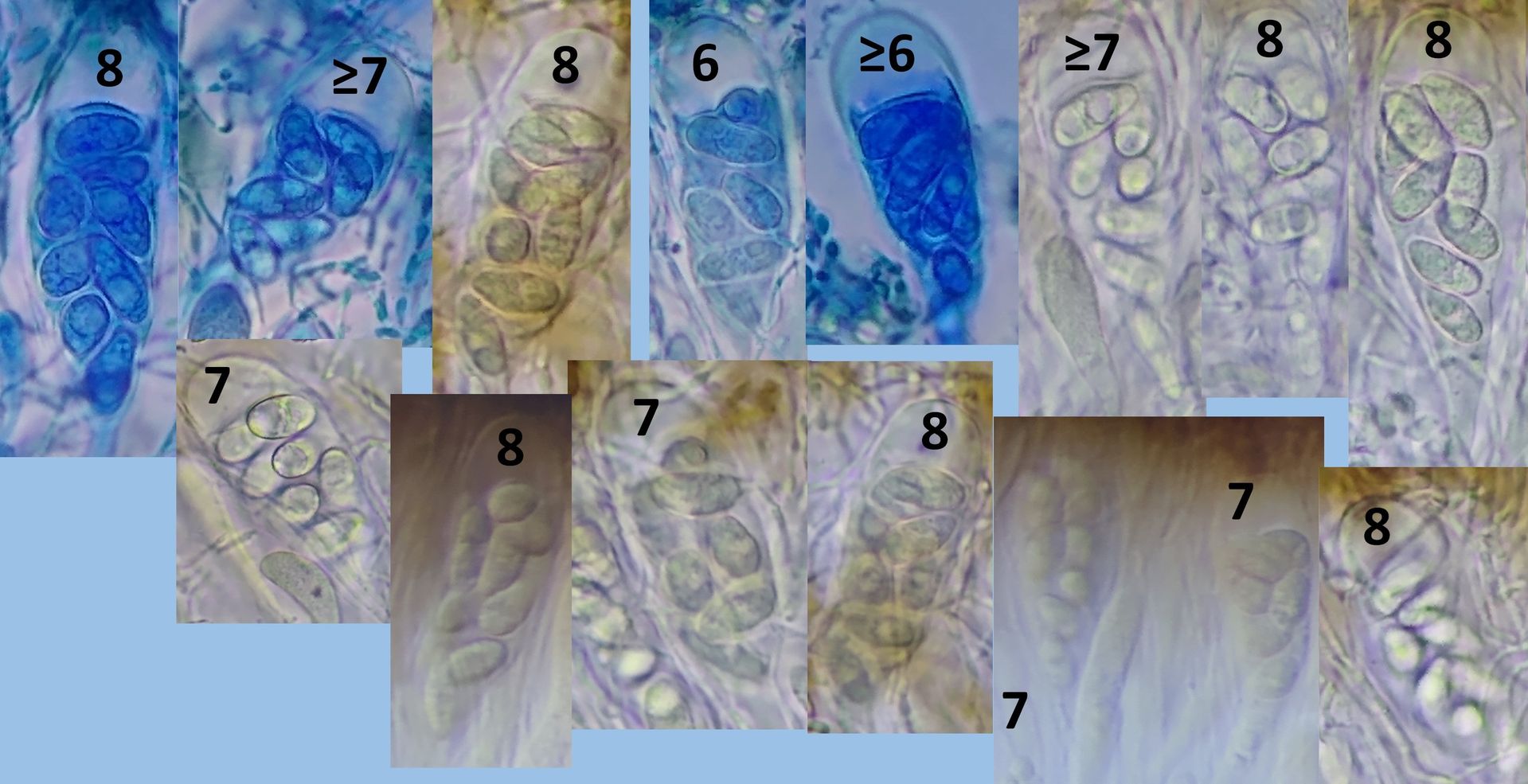 Die Asci sind im wesentlichen 8-sporig, teils sind nur 6 Sporen zu erkennen.