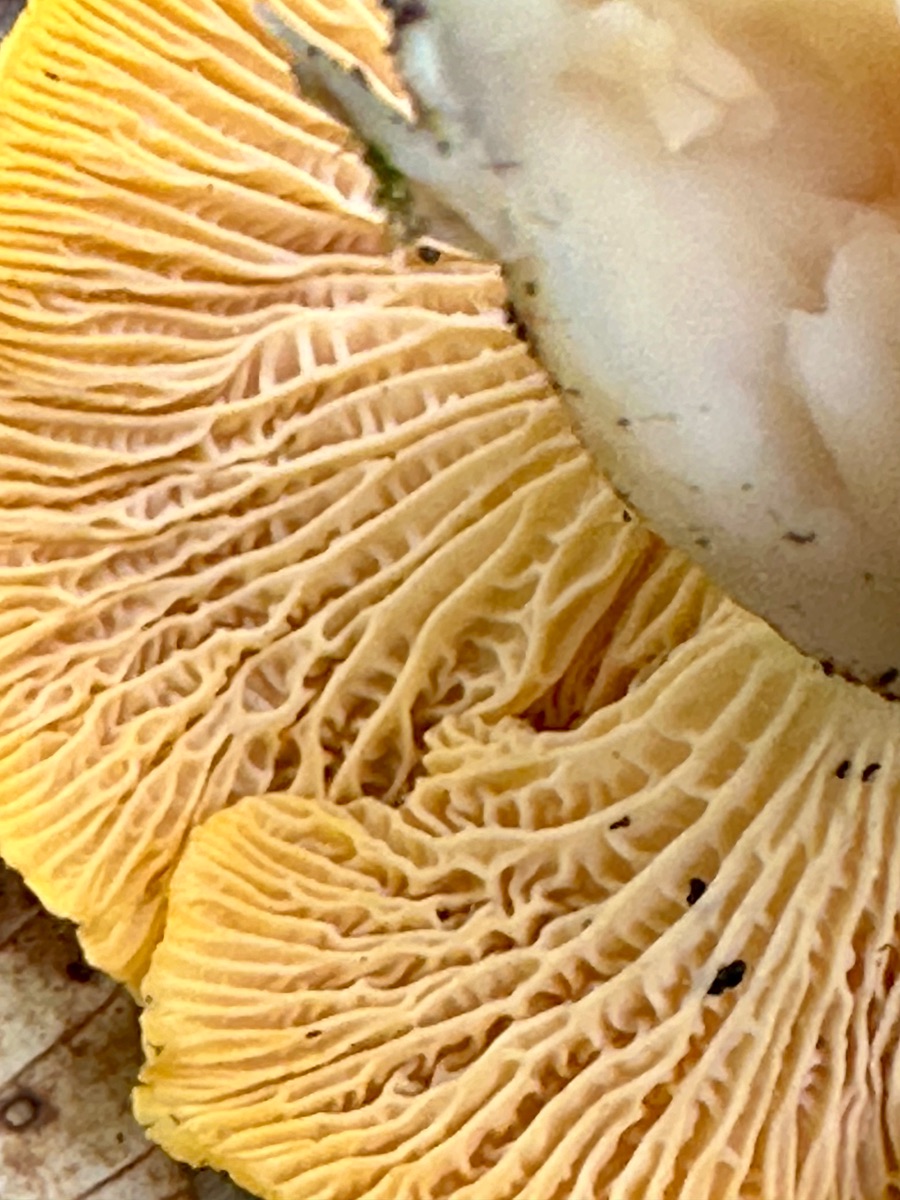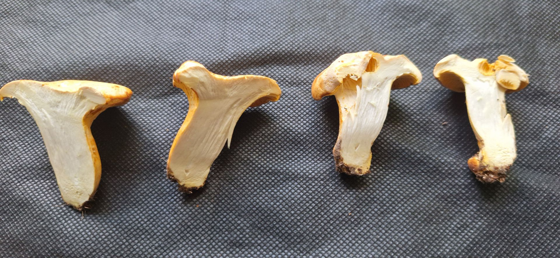 Das sieht man bei deinem ja auch etwas, wars da etwas trockener in dem Zeitraum, wo die gewachsen waren, so ein paar Tage knackig warm und Sonne reichen? Je dünnfleischiger der am Rand ist desto schneller geht das natürlich. Manche cibarius gestern im Wald waren leicht wie Pappe und trocken zäh, wie Leder, manche im Ganzen viel heller gelb.