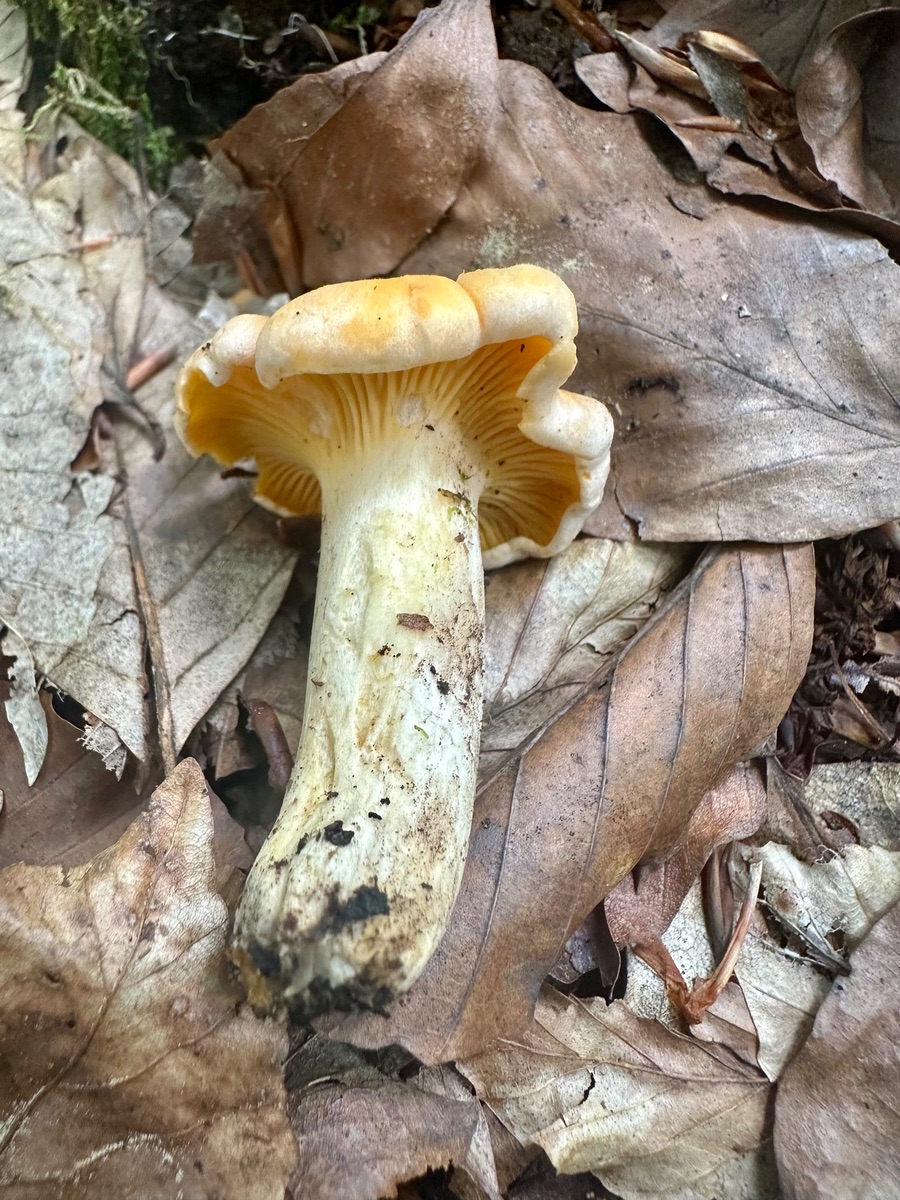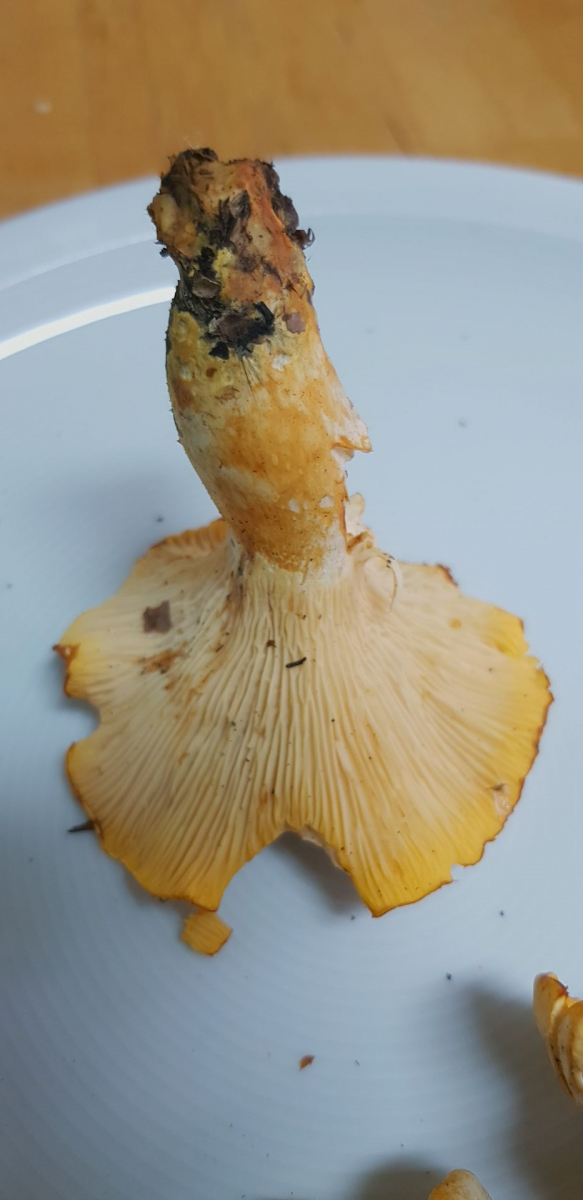 Lamellen und Leisten hast du schon korrigiert. Und schon mal klar gemacht, dass es kein Porling sein kann. Wichtig wäre es, deinen Fund fotografisch besser abzulichten. Vielleicht liest du dich auch ein wenig ein. Bei uns in BaWü konnten wir bislang - die letzten Wochen - C.C. un pallens finden. Es ist ein geniales Pfifferlingsjahr, tob dich aus. Ich hoffe, die bisherigen Kommentare konnten dir helfen bei der Bestimmung. Den schwärzenden Pfifferling haben wir leider seit 2-3 Jahren nicht mehr gefunden. Er kommt hier aber auch vor. Ich stelle hier ein paar Aufnahmen ein der letzten Funde. Viel Erfolg und liebe Grüße ans Forum.