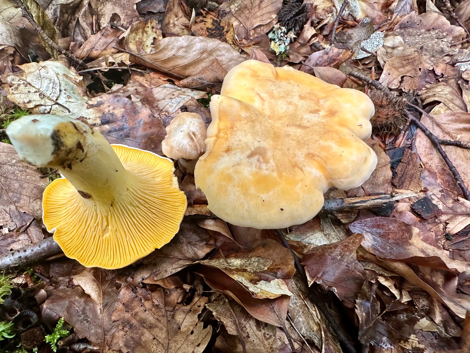 Ist das C. pallens? Das Hymenophor war gelb wie bei cibarius. Ist subpruinosus Synonym zu pallens?