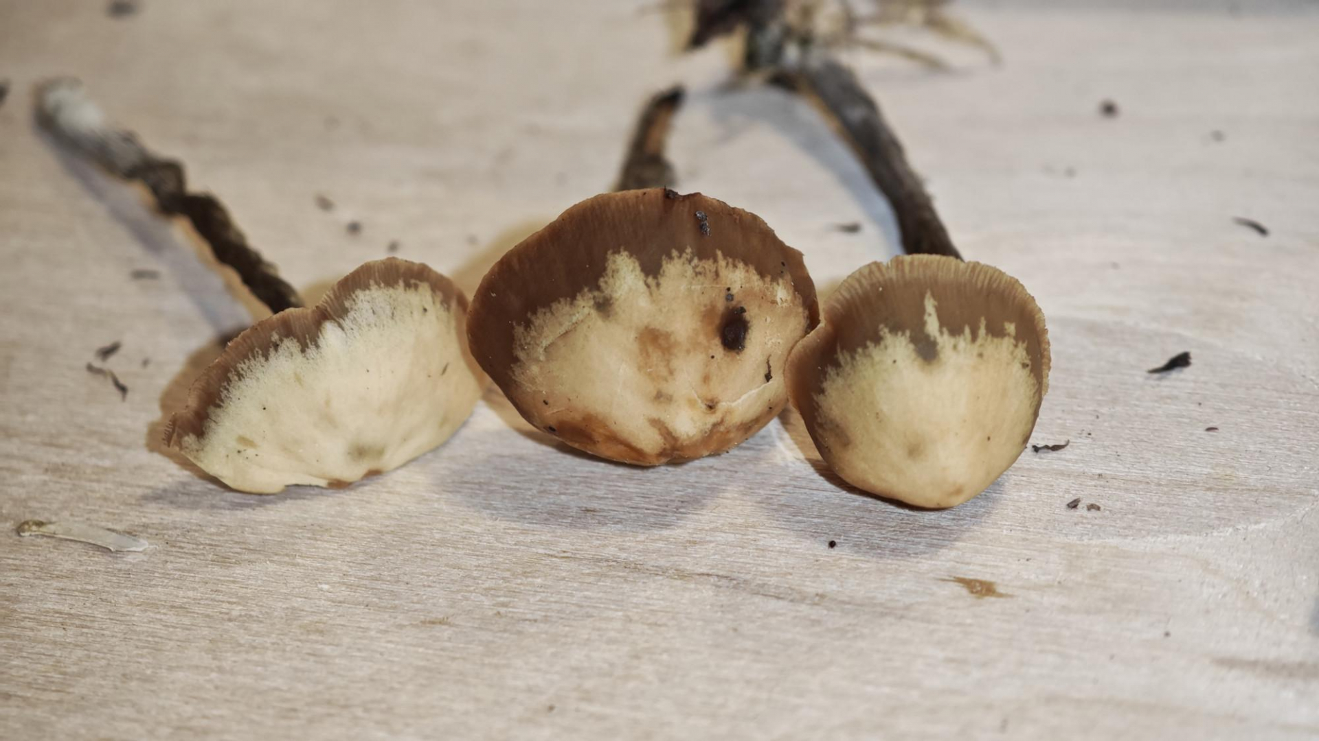 Die Hüte sind stark hygrophan, wie man auf dem folgenden Bild sehr gut sieht