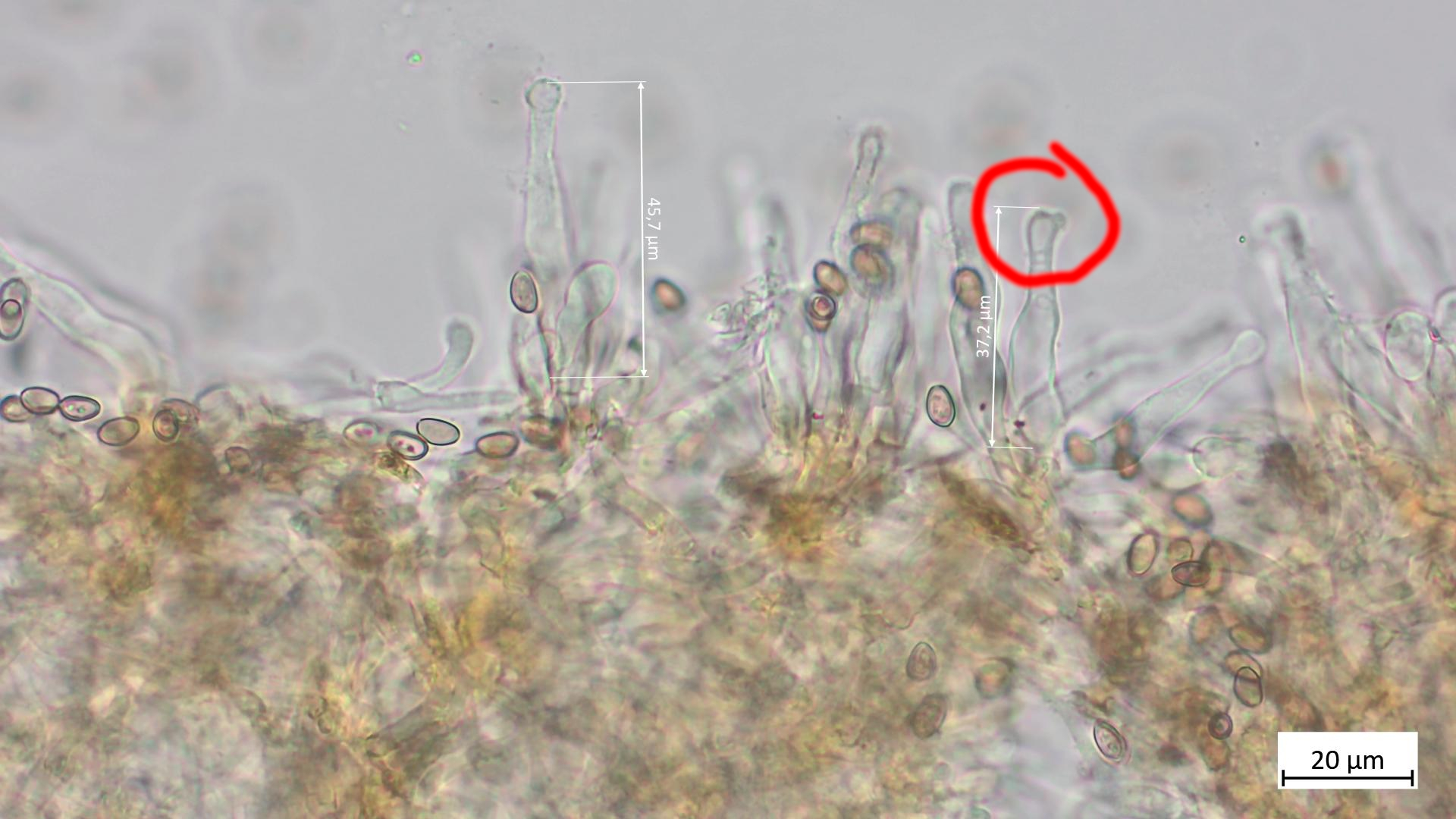 Nachfolgend noch Fotos von den Cheilozystiden. Soweit ich sehe dürften auch diese zu K. lignicola passen:
