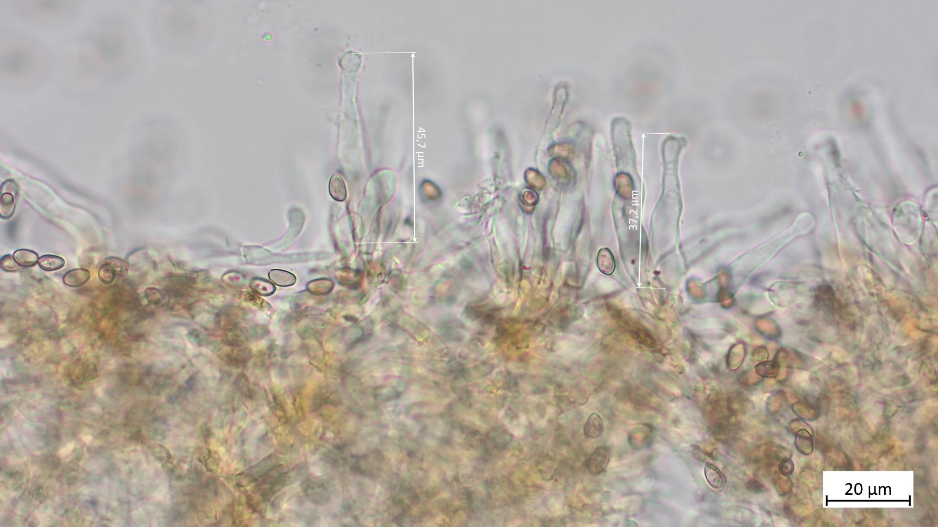 Nachfolgend noch Fotos von den Cheilozystiden. Soweit ich sehe dürften auch diese zu K. lignicola passen: