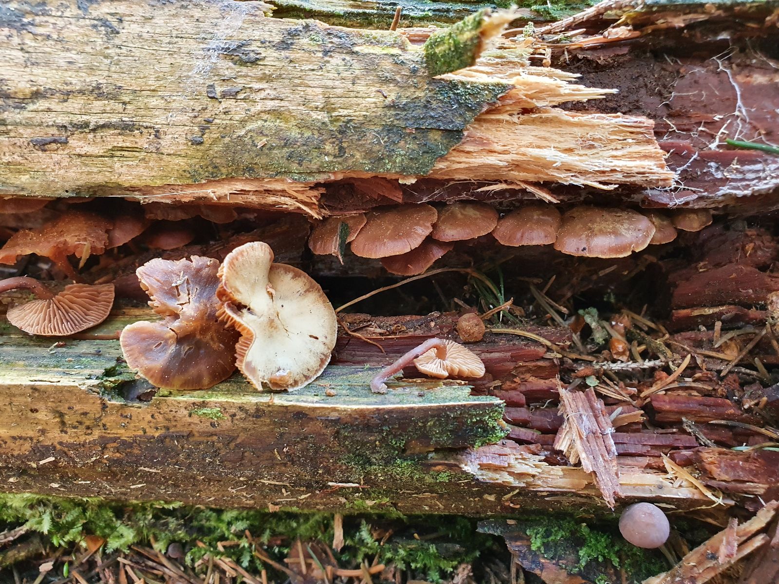 Bei uns ist pilztechnisch im Moment zwar leider noch nicht gerade viel los, das wenige was ich aber finde ist mMn zumindest spannend. Gestern fand ich auf etwa 1800m an morschem Nadelholz, kleine, braune Pilzchen und ich dachte zuerst an etwas aus dem Gifthäublings-Komplex. Die Pilze waren ziemlich klein (ca. 1.5cm bis max. 3cm) und schienen büschelig oder zumindest sehr gesellig zu wachsen. Als ich dann ein paar Pilze entnahm, war ich mir nicht mehr sicher, was das für eine Art sein könnte, da sie mir für Gifthäublinge irgendwie komisch schienen. Zuhause habe ich sie dann noch genauer untersucht und auch mikroskopiert, spätestens da, war klar, dass das keine Gifthäublinge sein können. Ich habe dann etwas gesucht und kam zu Kuehneromyces lignicola - Glattstieliges Stockschwämmchen. Der Fundort, die Jahreszeit und die Merkmale passen meiner Meinung nach. Seid ihr damit einverstanden?