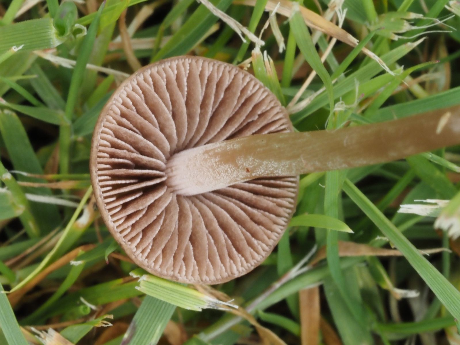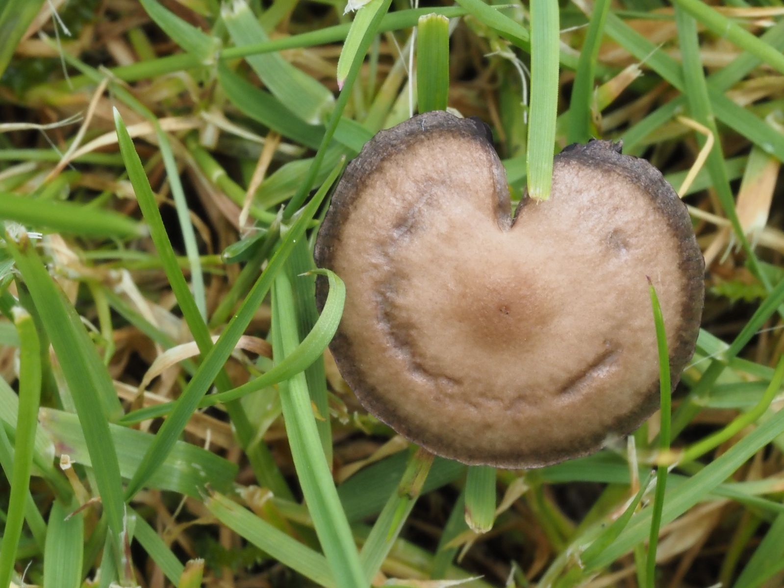 ich benötige mal wieder die Hilfe von euch Fachleuten, denn vor einigen Tagen erschienen in unserem Zierrasen mehr oder weniger gesellig wachsende kleine dunkelbraune Lamellenpilze. Zunächst dachte ich an Nelkenschwindlinge, die dort im vorigen Jahr aufgetreten waren, konnte diese aber schnell ausschließen weil der Stiel nicht elastisch-biegsam war.