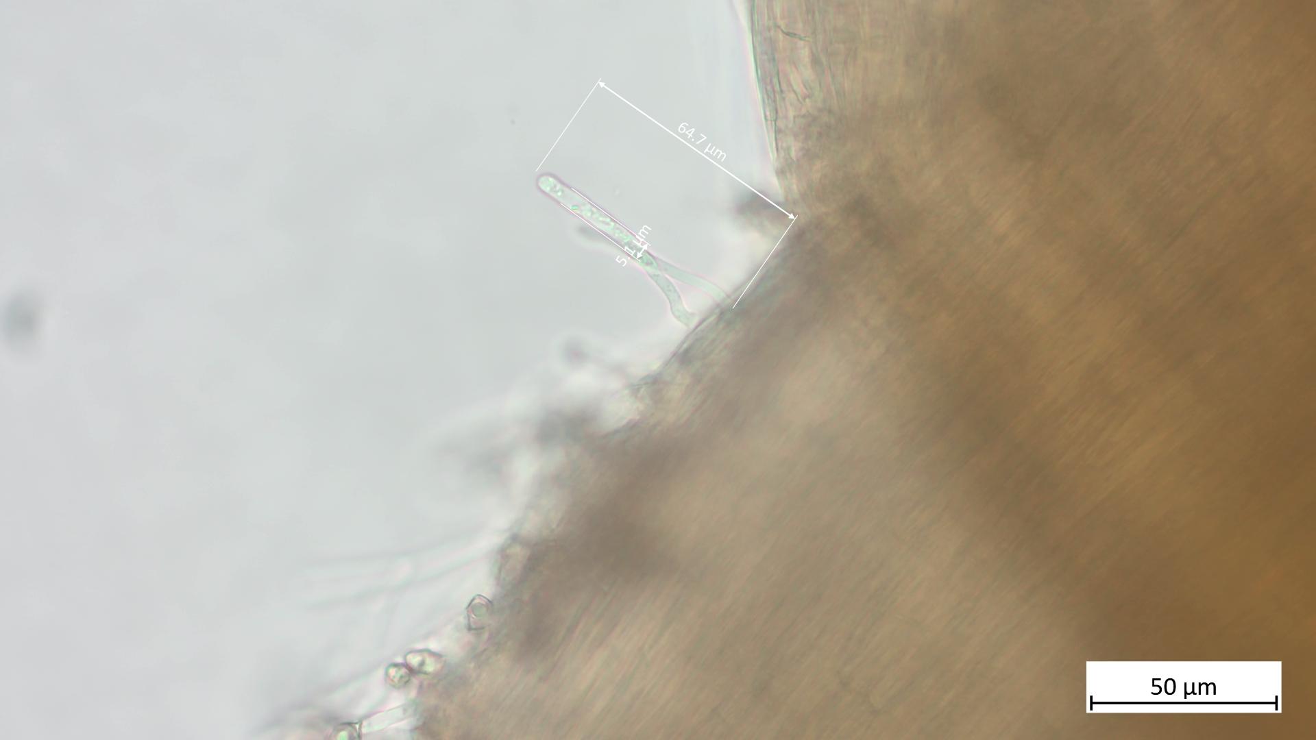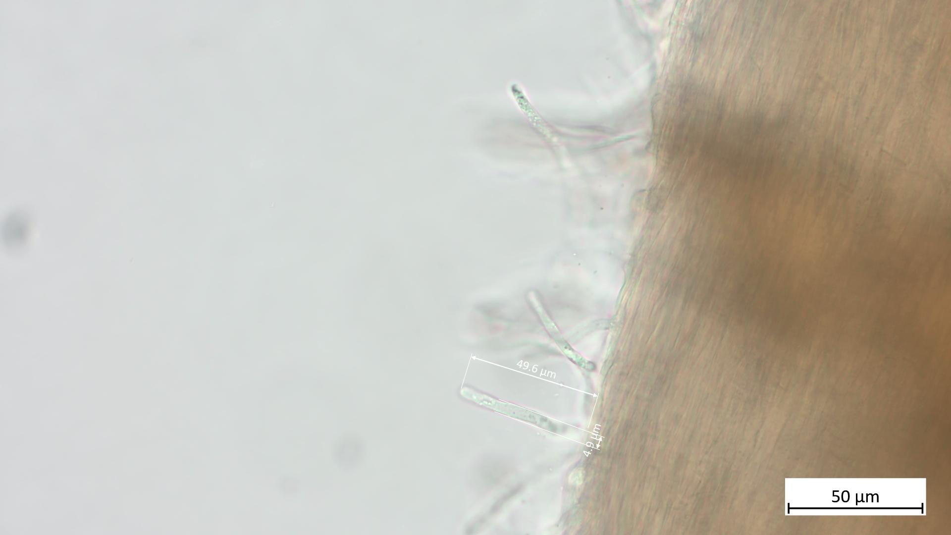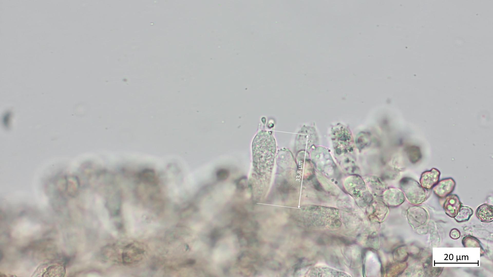 Zum Nachweis von Cheilozystiden empfiehlt es sich, eine Lamelle auf einen Objektträger zu legen, dann mit der Rasierklinge einen dünnen Streifen der Lamellenschneide abzutrennen und die dann ohne großes Quetschen weiter zu untersuchen. Wenn Zystiden vorhanden sind, sollte man die dann eigentlich an der Schneide gut erkennen können.