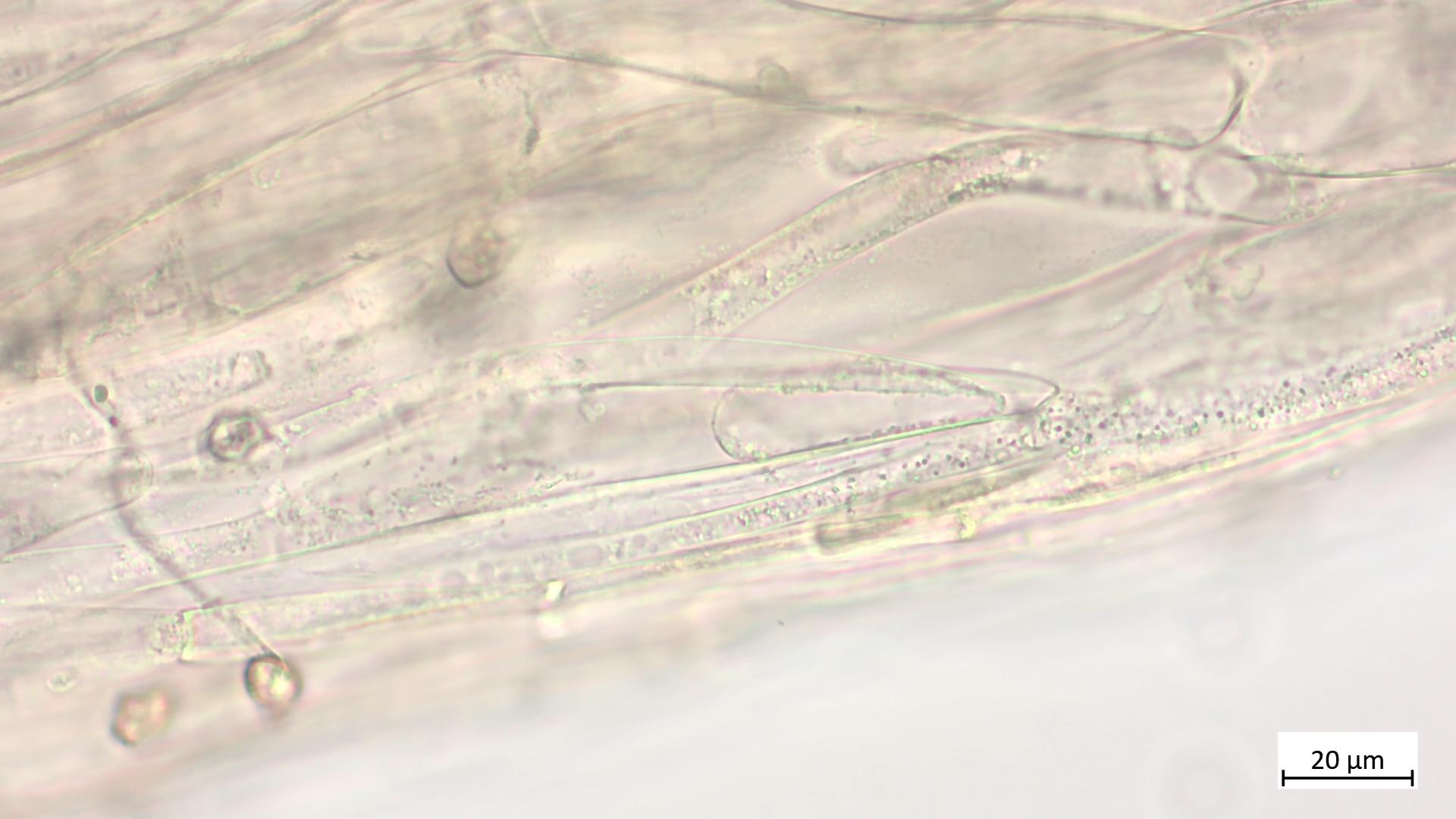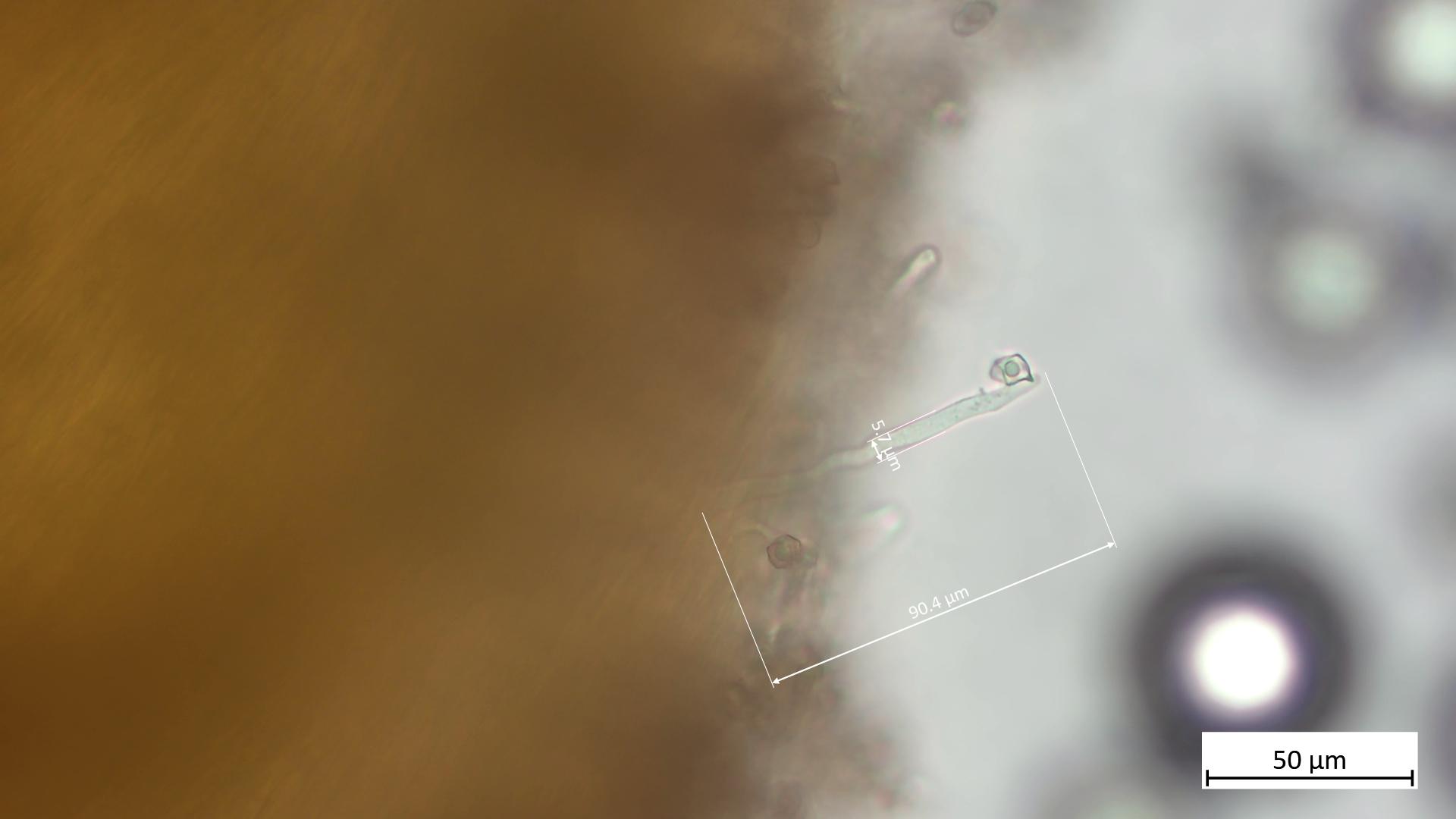 Zum Nachweis von Cheilozystiden empfiehlt es sich, eine Lamelle auf einen Objektträger zu legen, dann mit der Rasierklinge einen dünnen Streifen der Lamellenschneide abzutrennen und die dann ohne großes Quetschen weiter zu untersuchen.