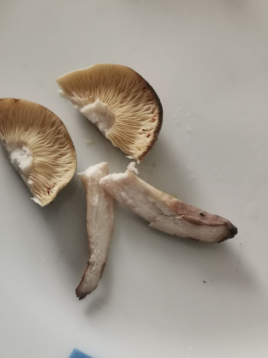Evtl die Farbe bei den Lamellen bin ich nicht sicher lg und Geruch war mild pilzig dei San ma in der Hitze total eingegangen