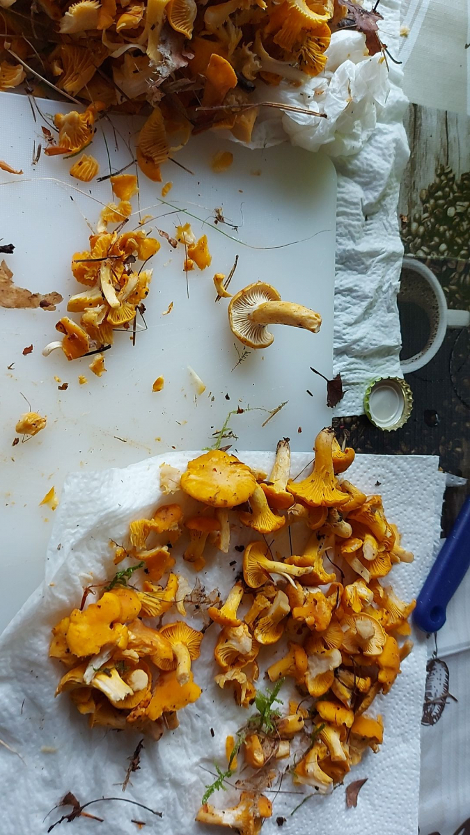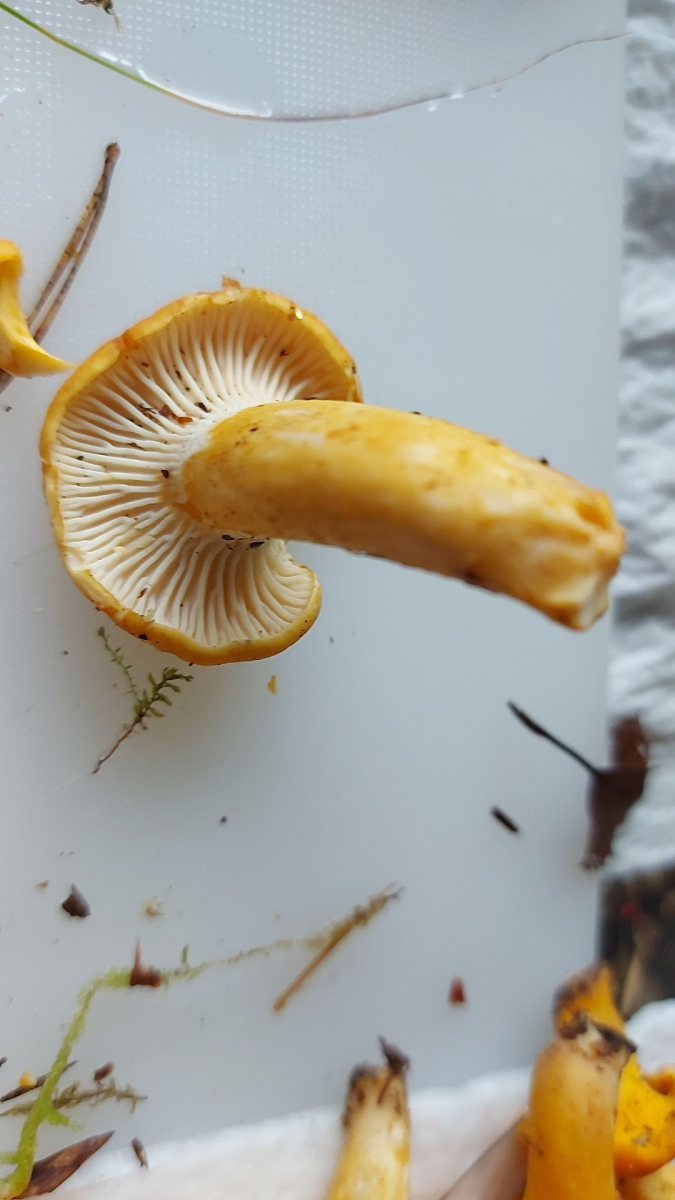 bein Pfifferlinge-Putzen war mir mittendrin folgender Pilz aufgefallen: siehe Bilder