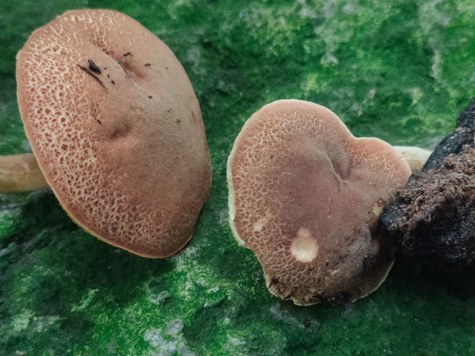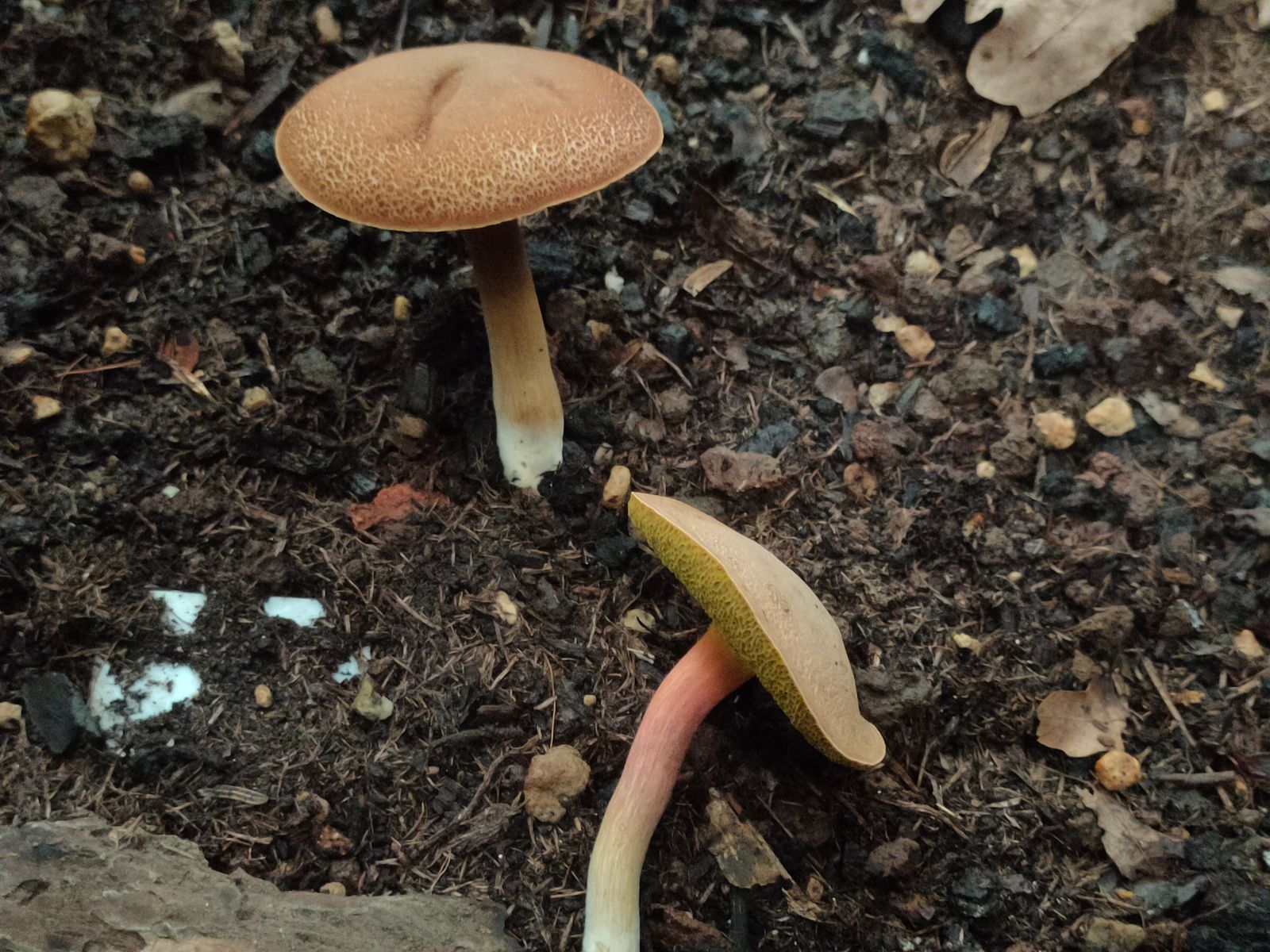 Den Filzröhrling halte ich für Xerocomellus chrysenteron, auch wenn ich diese Hutfarbe, Pfirsich-like, so nicht kenne. Die Frasstelle, in einem Bild zu erkennen,
