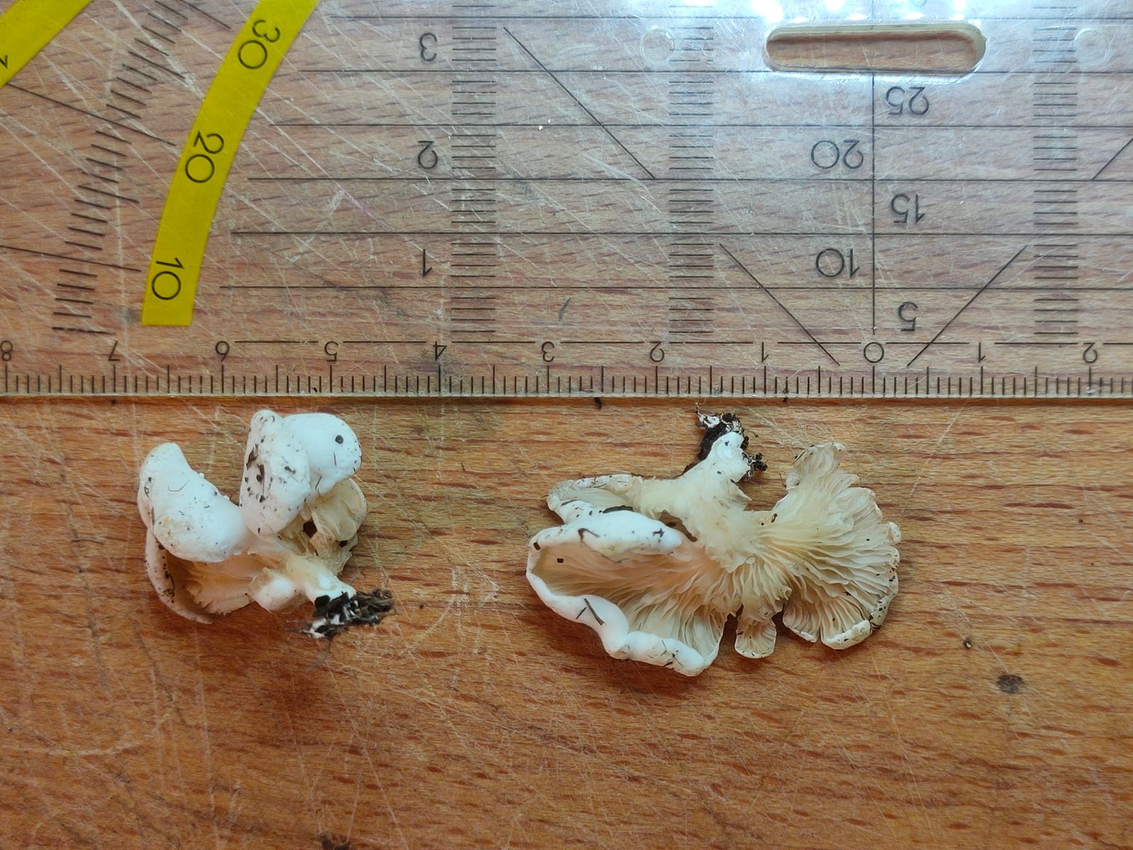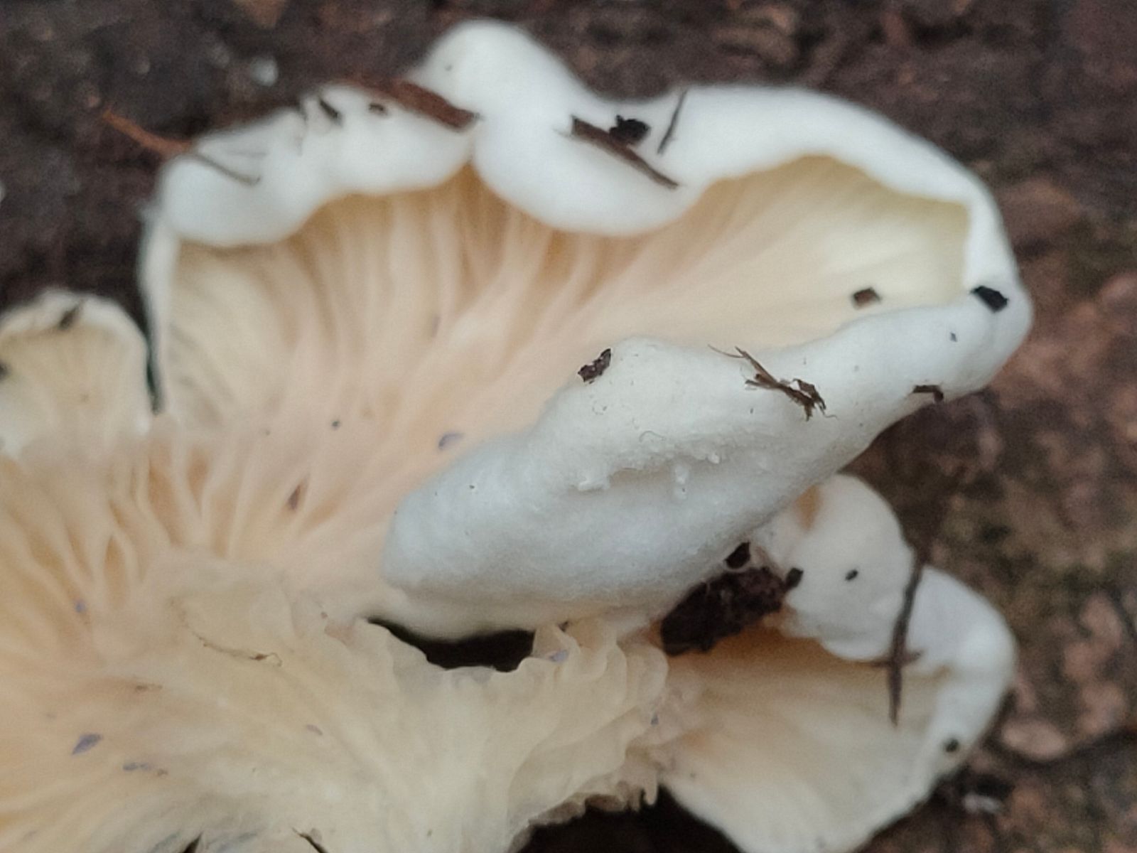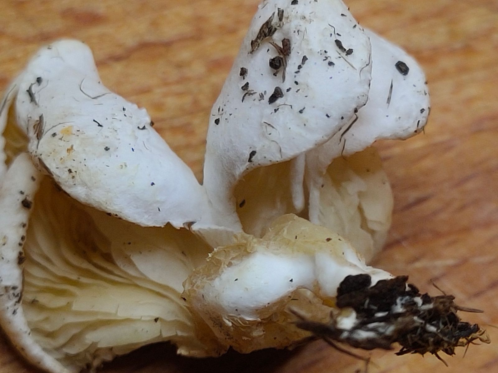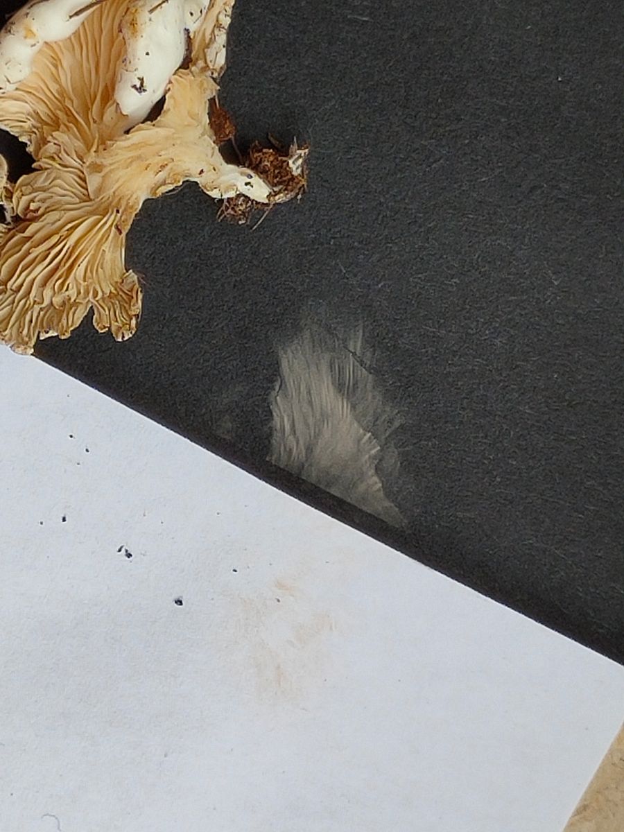 Ich sehe eine leichte Rötung/Rose in den leicht gelblichen Lamellen. Vielleicht ist es ein Entoloma oder Clitopilus oder doch keine heimische Art? Das SSP ist in arbeit.