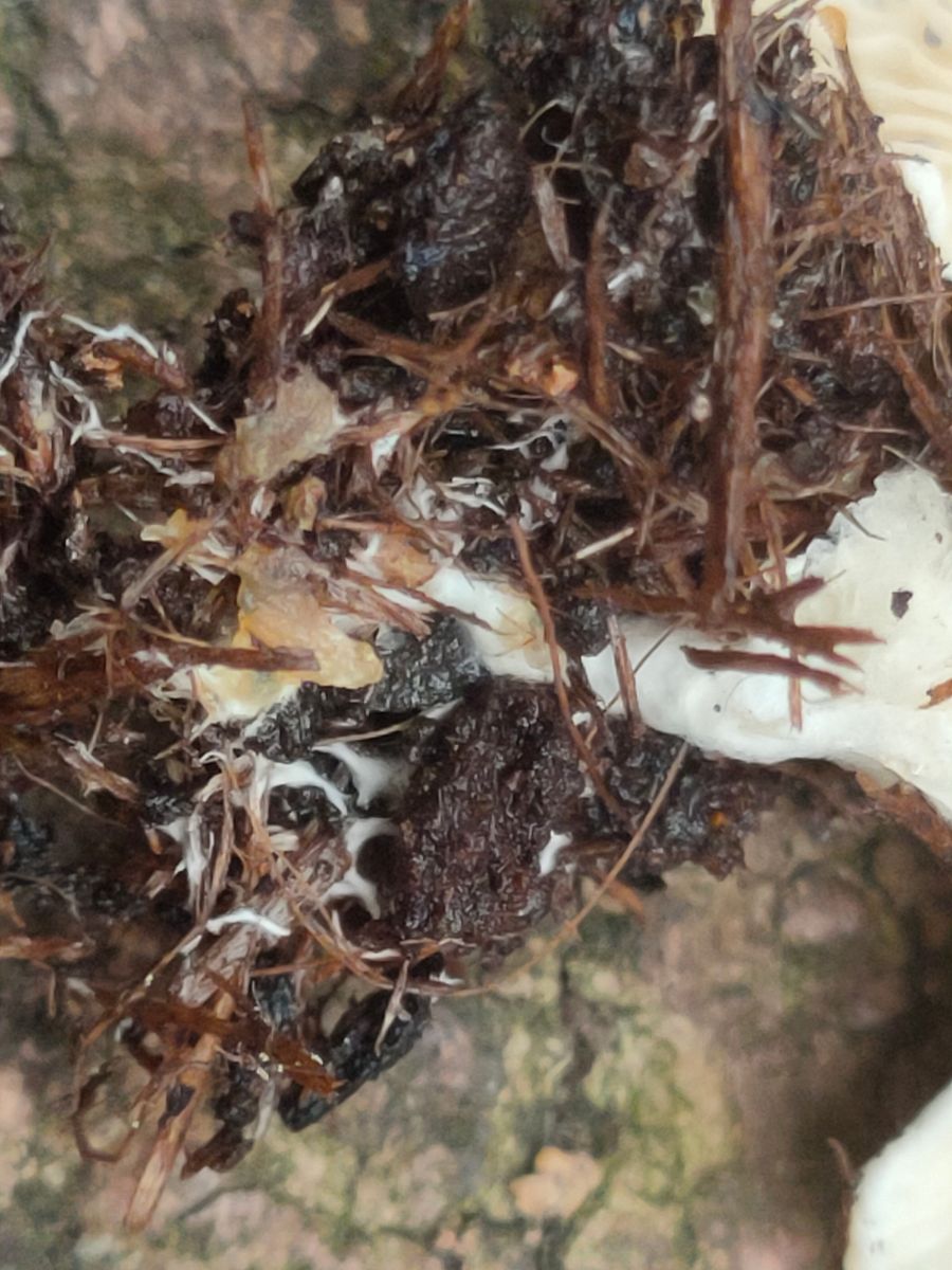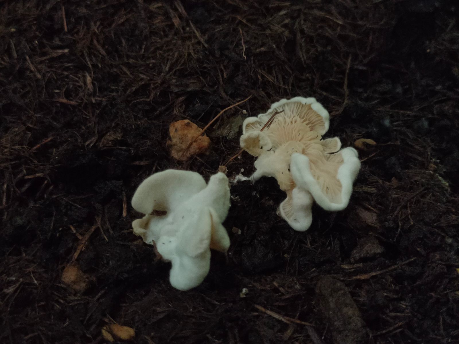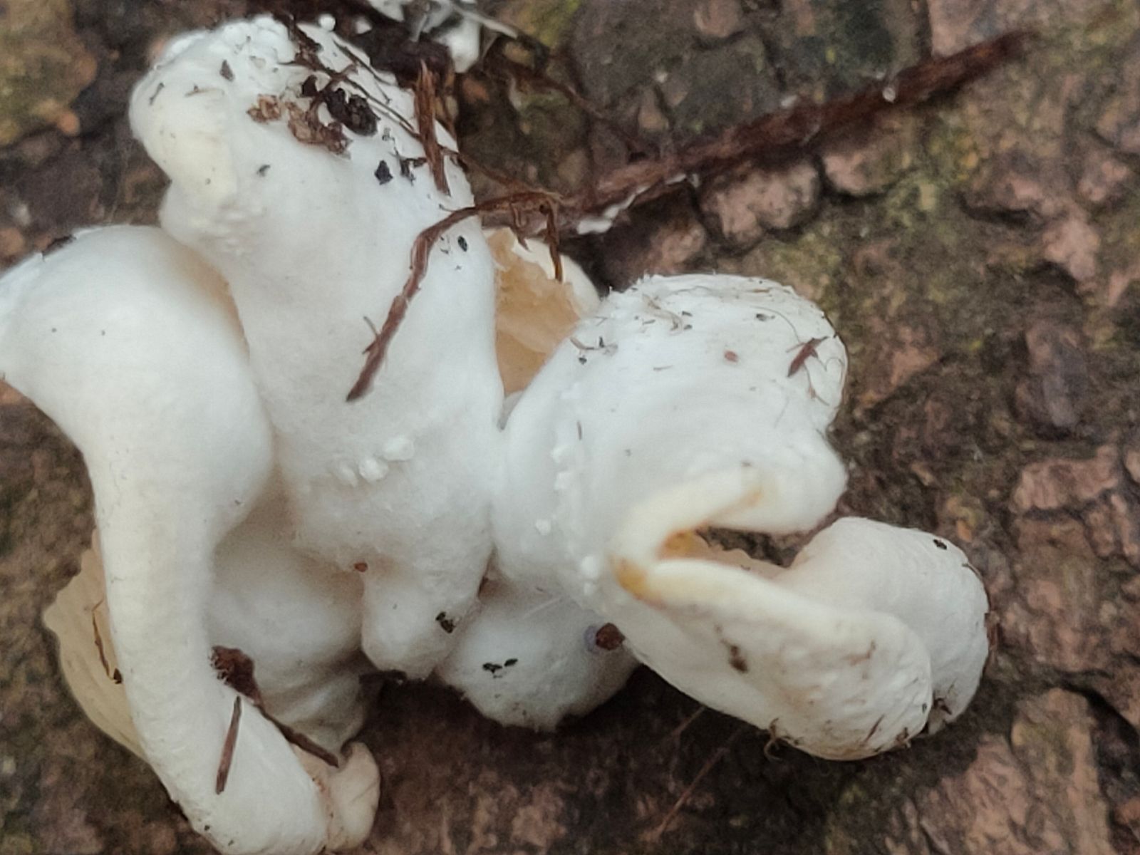 Es wurden noch zwei neue unbekannte weiße Lamellenpilz mit 2-4 cm Durchmesser gefunden. Bevor ich makroskopisch diesen Pilz beschreibe ist es wohl einfacher diesen zu zeigen.Da beide FK eine ungewöhnliche Wuchsform habe gehe ich nicht von einer Wuchsanomalie aus