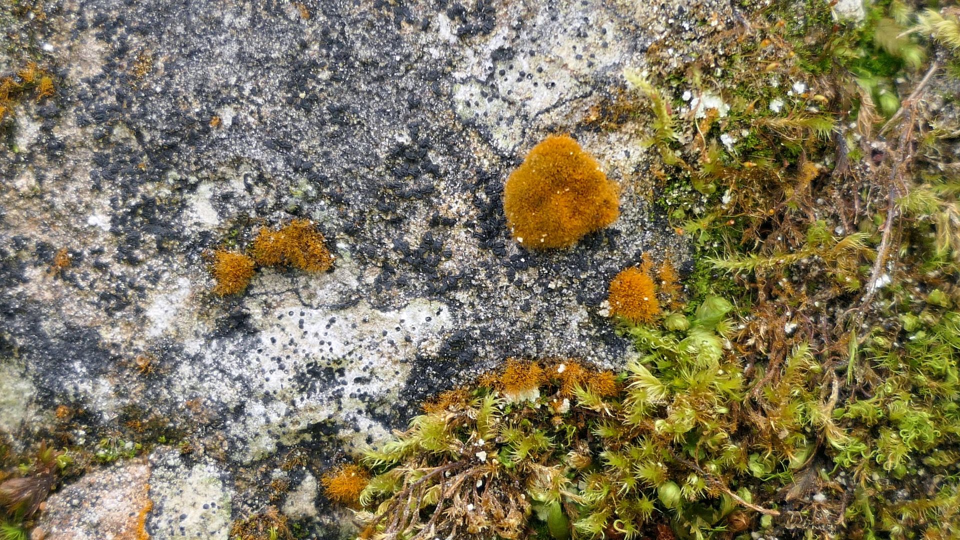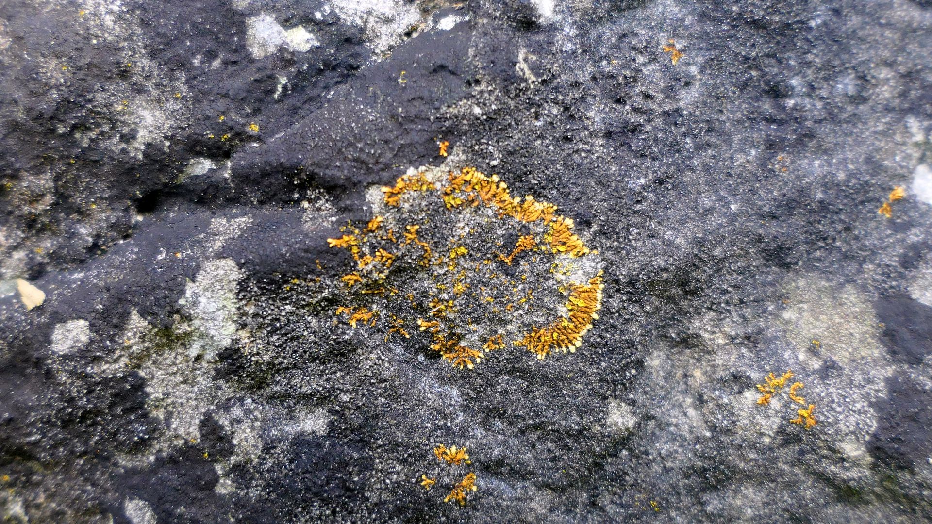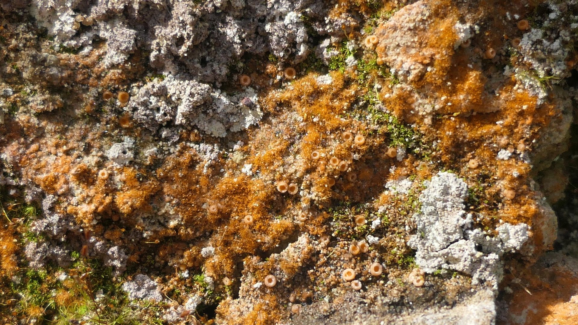 Aber hie und da sind leuchtende Schönflecke (Caloplaca s.lat.) eingestreut: