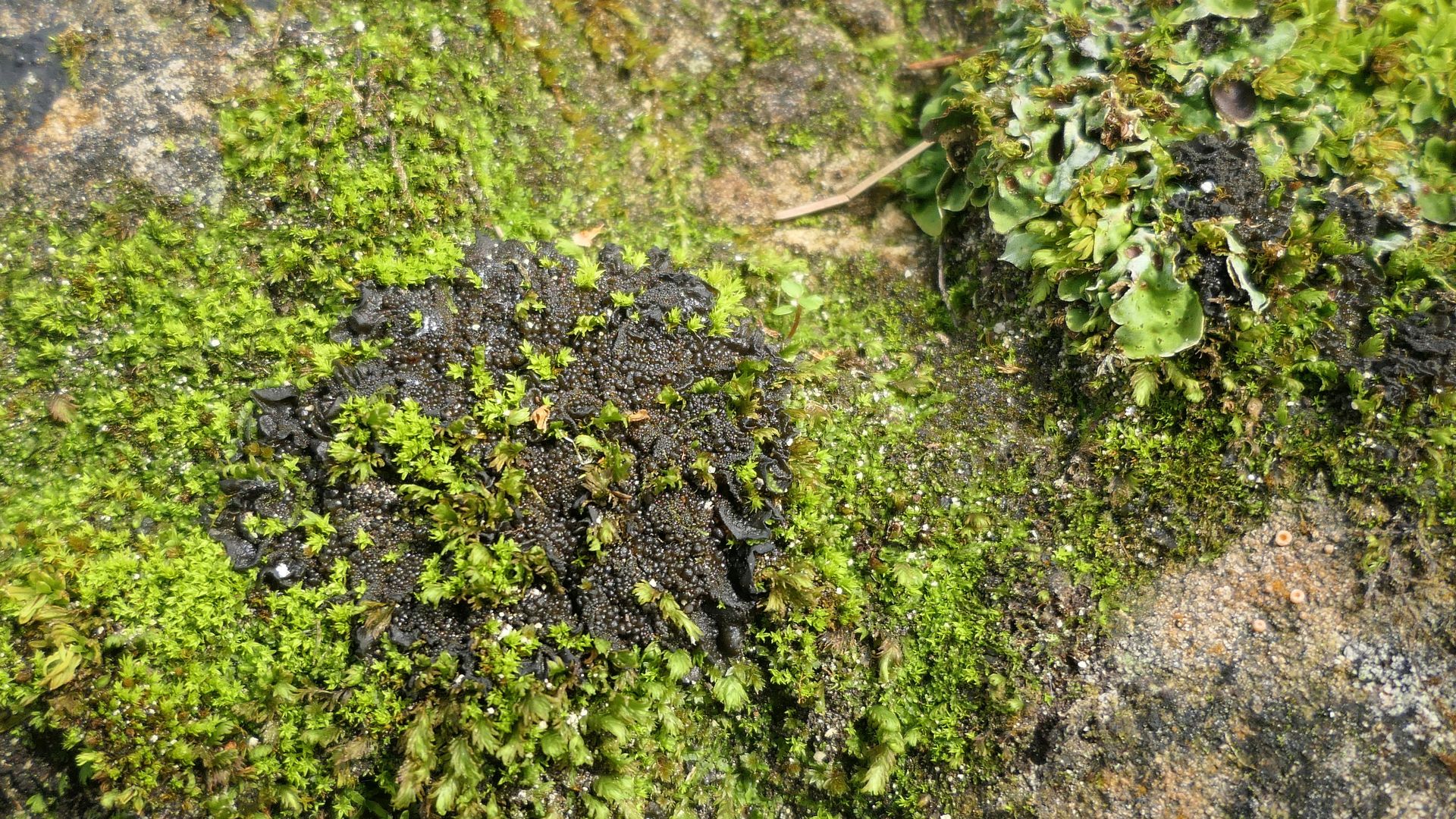 Das Lager ist unauffällig, da von schwärzlichen Cyanobakterien überzogen.