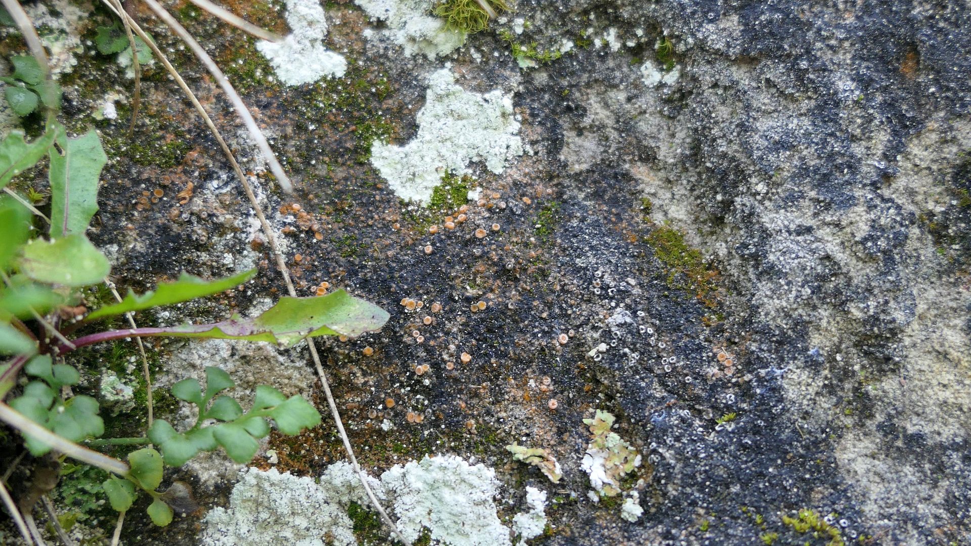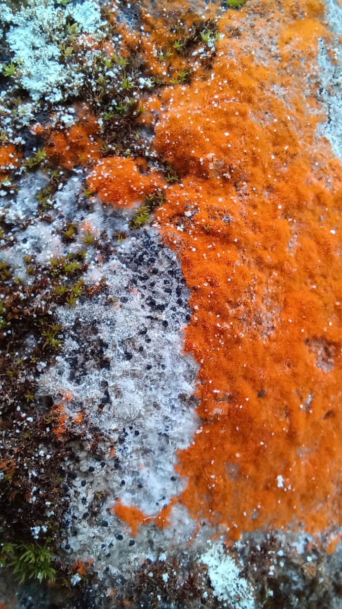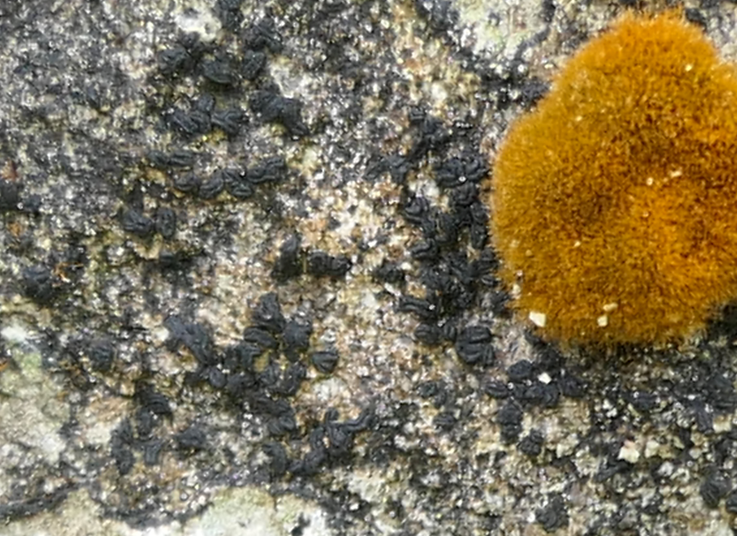 Bild 10b Diese Gyalecta jenensis ist mit orangen Trentepohlia-Algen bewachsen (wohl ausgebüxt?)
