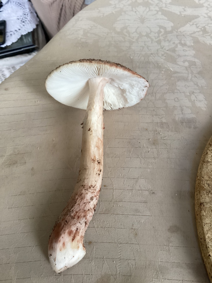 laut den Bildern sieht das für mich aus wie ein Perlpilz - Amanita rubescens.