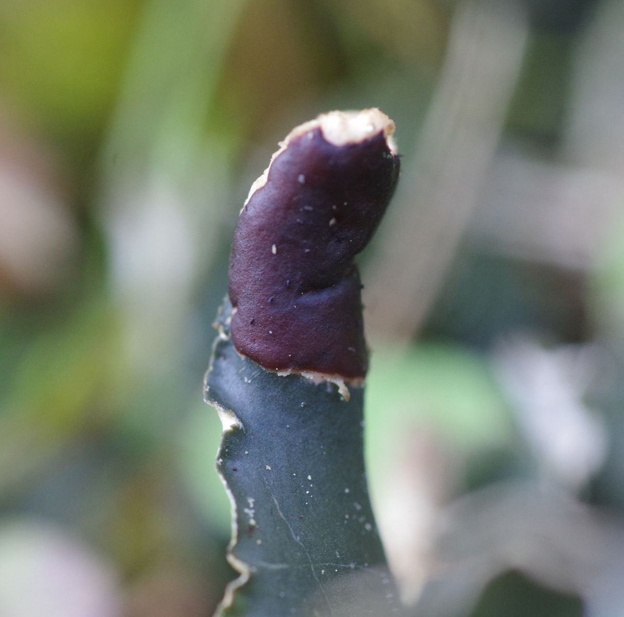 Noch interessehalber: Welche Färbung hat denn das dunkle Apothecium an deiner Probe, wenn es feucht ist?
