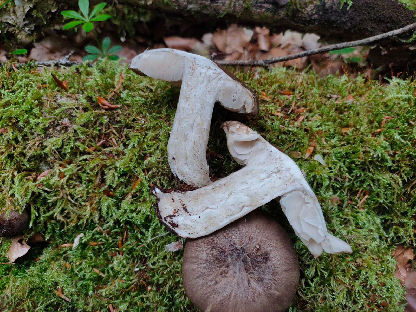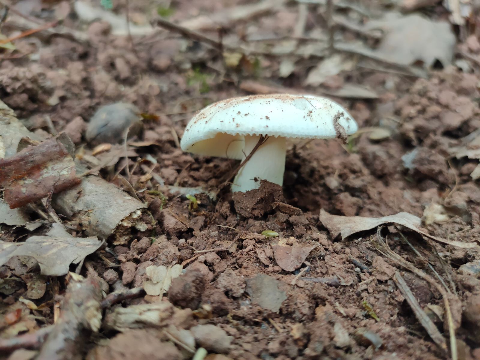 2. Ein blasser kleinerer(ca 4 cm) weisser, absolut milder Täubling in Begleitung von Birke und Fagus. Fundort wärme begünstigt auf Kalk Die Huthaut lässt sich weit abziehen (2/3).
