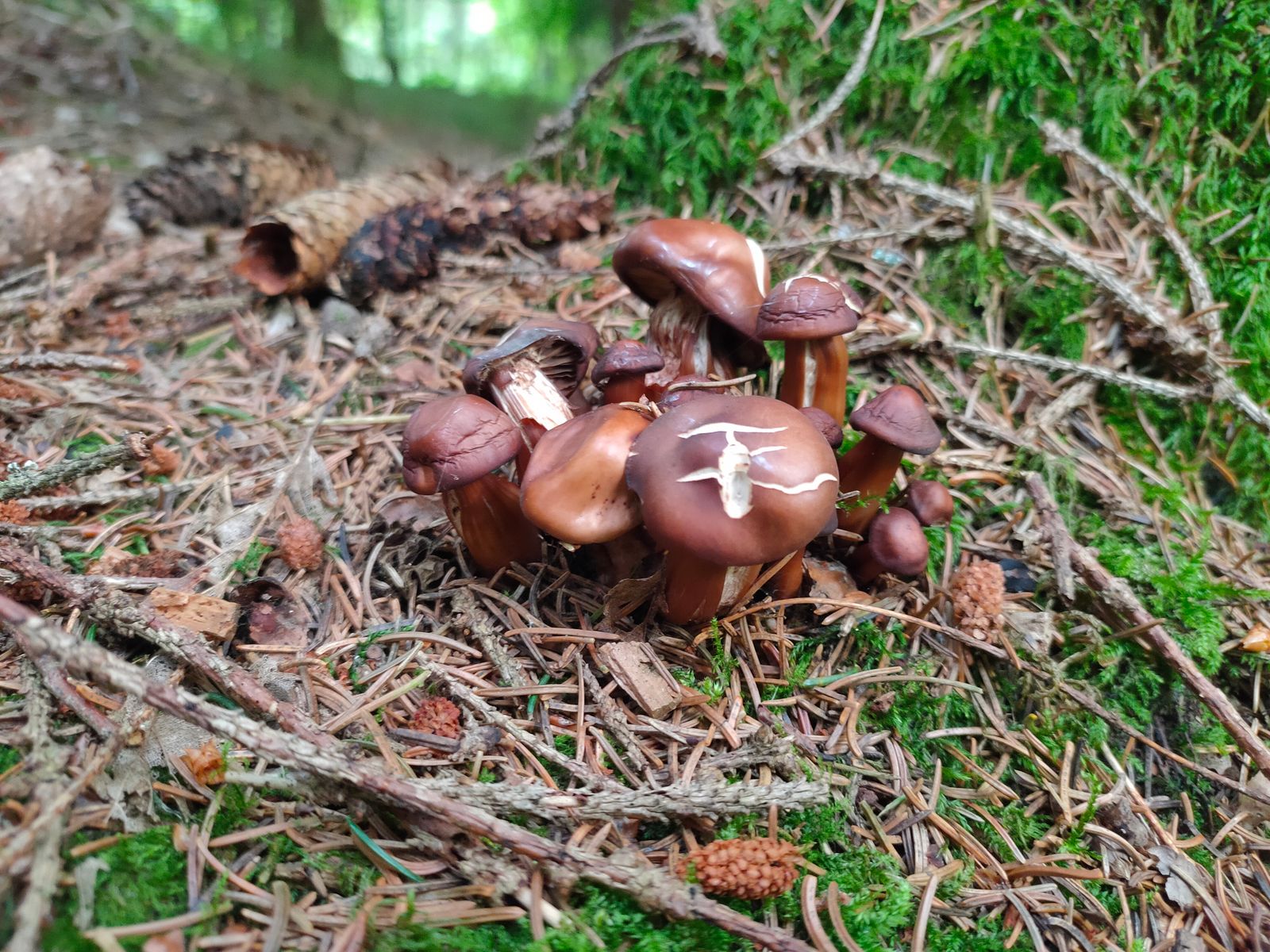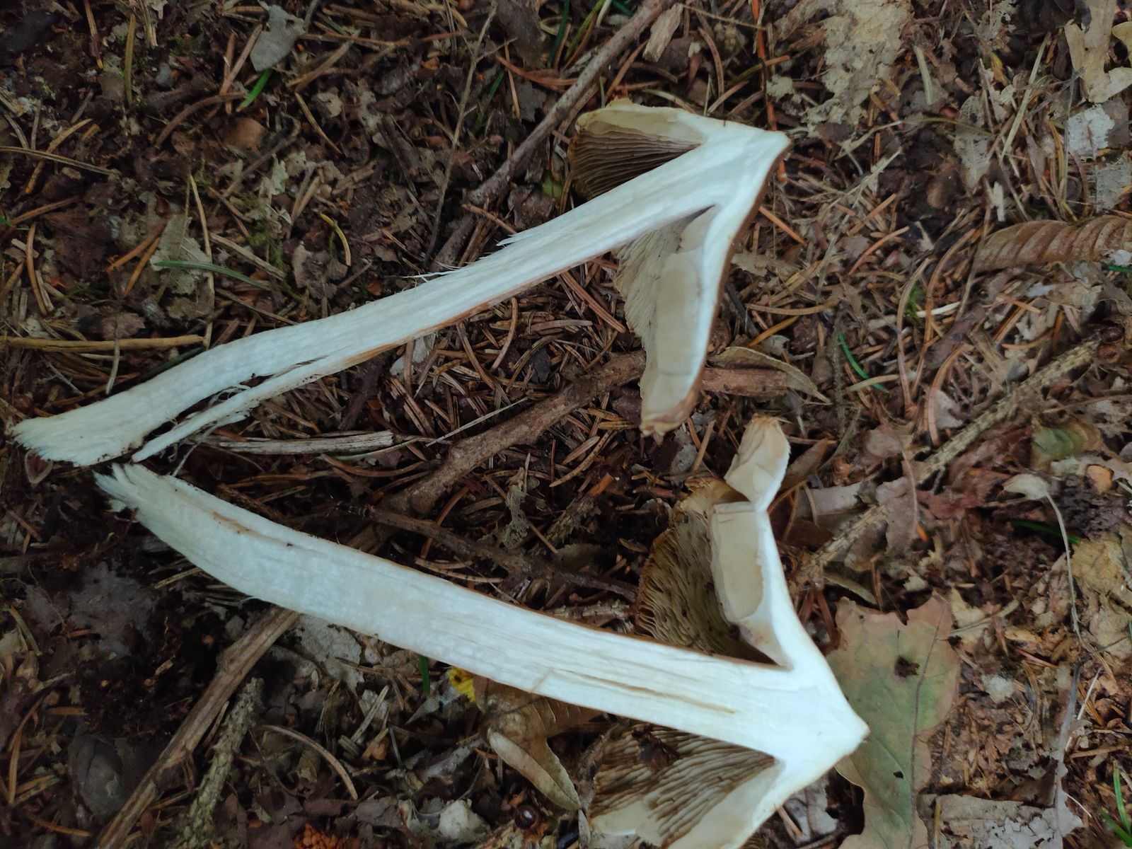 4. Aus meiner Sicht ein spindeliger Rübling. Dieser wurde unter Quercus gefunden. Gesellig im Wurzelbereich und mit aufgerissene Huthaut. Tief wurzelt, im Stiel furchig verdreht.