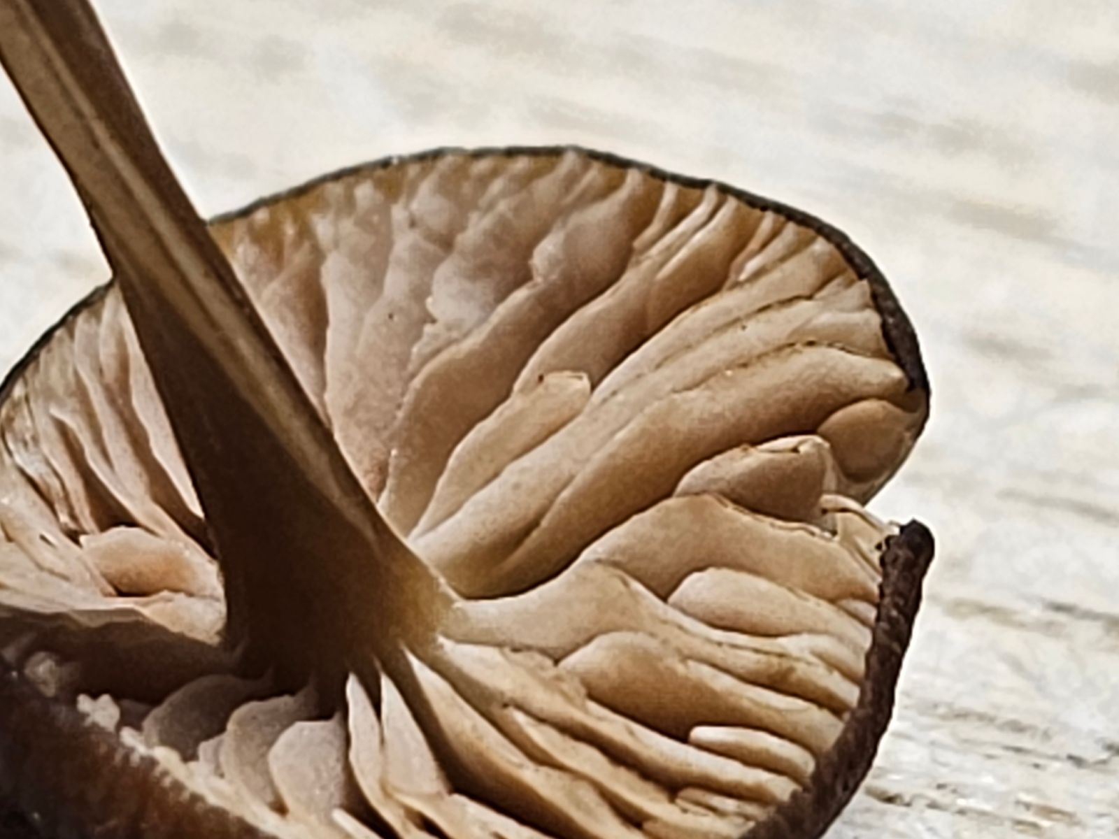 Auf der Nahaufnahme kann man erkennen, dass die Lamellenschneide stellenweise braun ist.