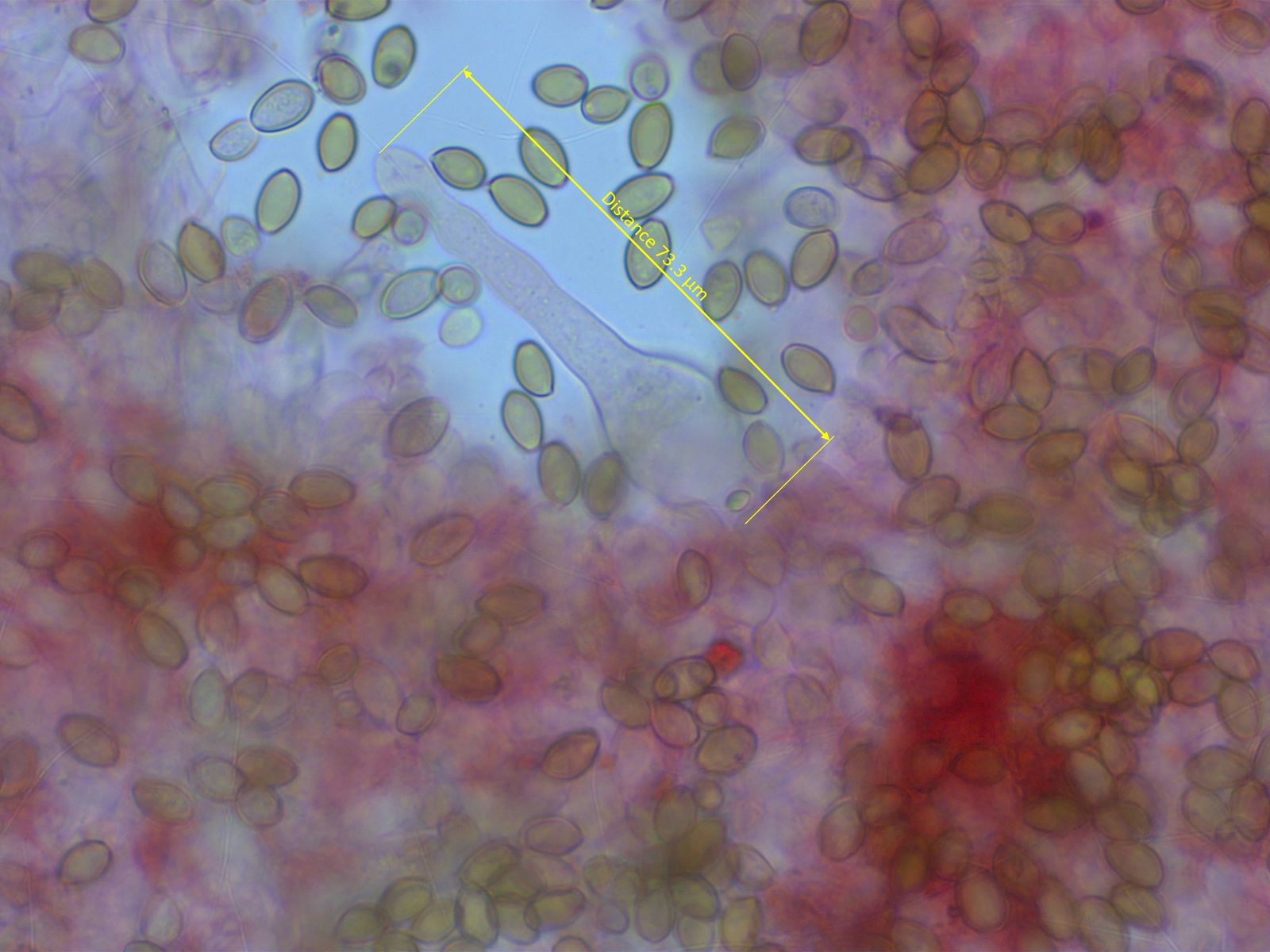 In KOH sieht man gut, dass die Zystiden braun pigmentiert sind.