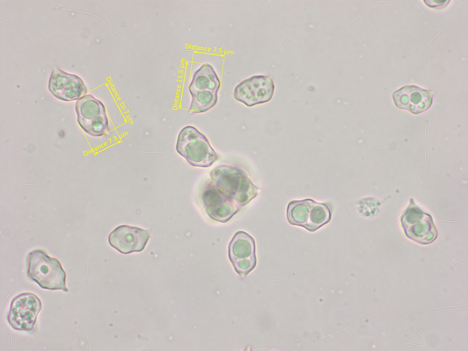Die Cheilozystiden sind oft keulig, einige aber auch etwas unregelmässig geformt.