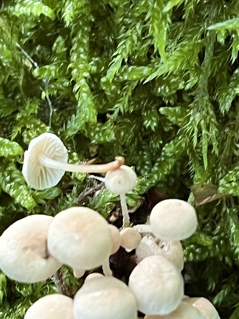 Bei dem ersten Pilz handelt es sich um einen Helmling mit Basalscheibchen, welcher an Buchenlaub wächst. Hier vermute ich etwas aus dem Artenkreis um Mycena stylobates.