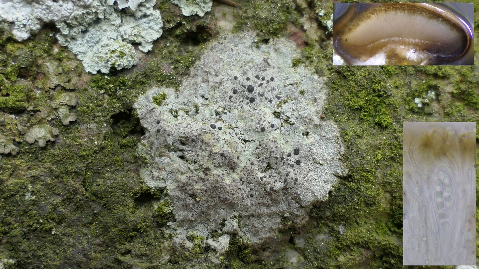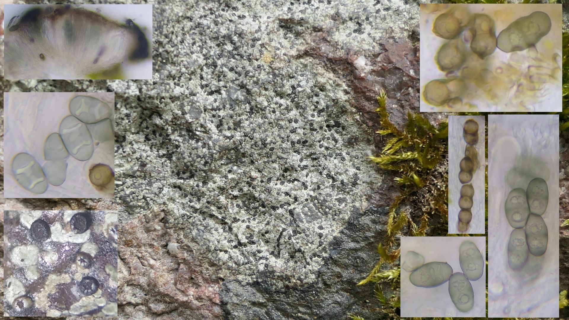 Die Gattung Rinodina ist schwierig zu bestimmen, da bei dieser Gattung die Sporen deutlich altern und in allen möglichen Stadien im Dünnschnitt zu finden sind.