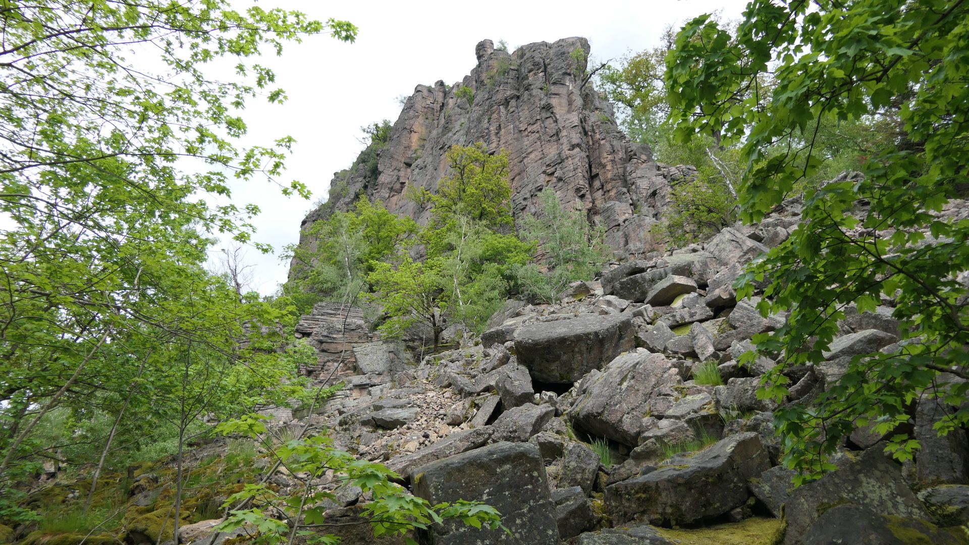 Anfang Mai war ich zu Besuch am Battert, einem Berg (568 m üNN) über Baden-Baden, der ein sehr markantes Kliff aus sauerem Porphyrkonglomerat nach Südwesten besitzt.