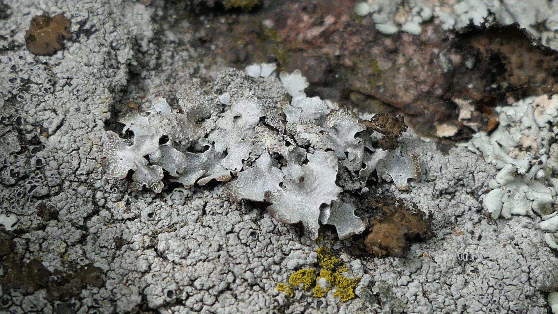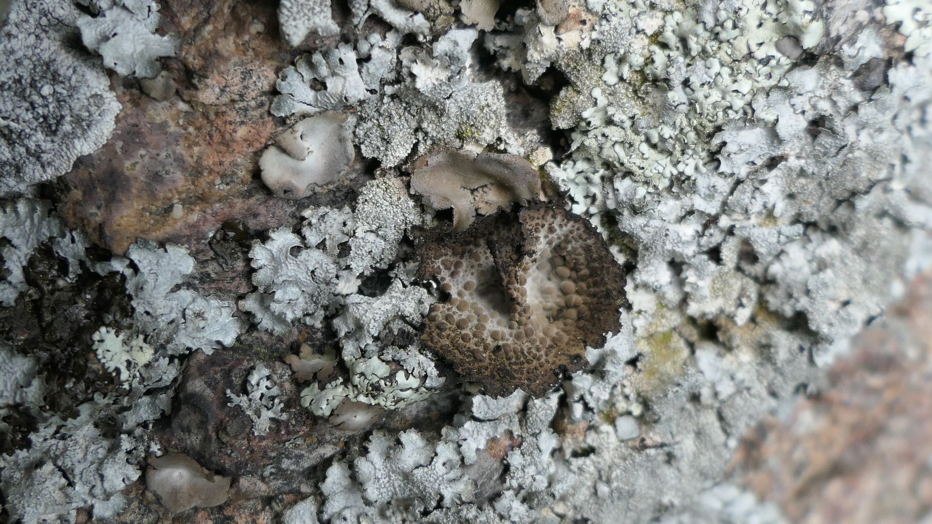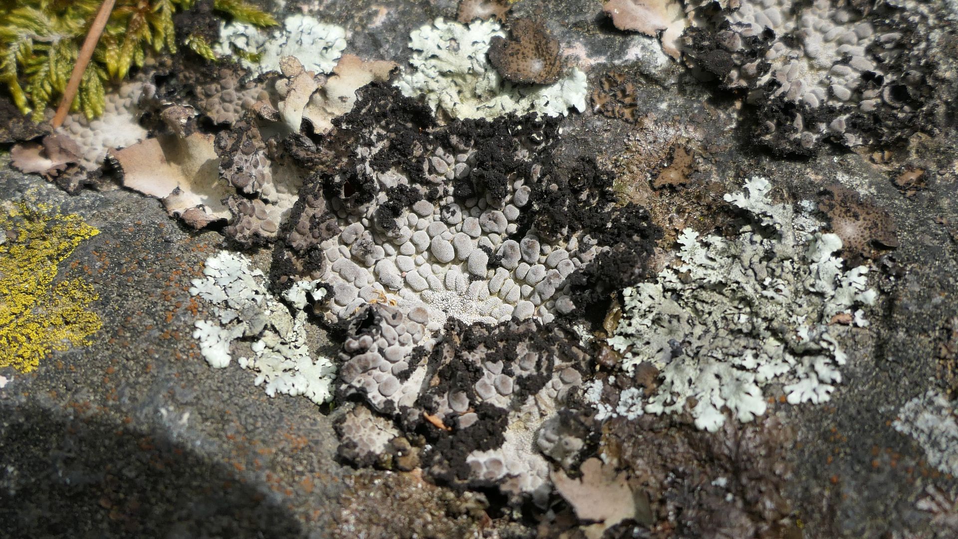 Ganz andere Flechten dominieren hier, unter anderem Nabelflechten.