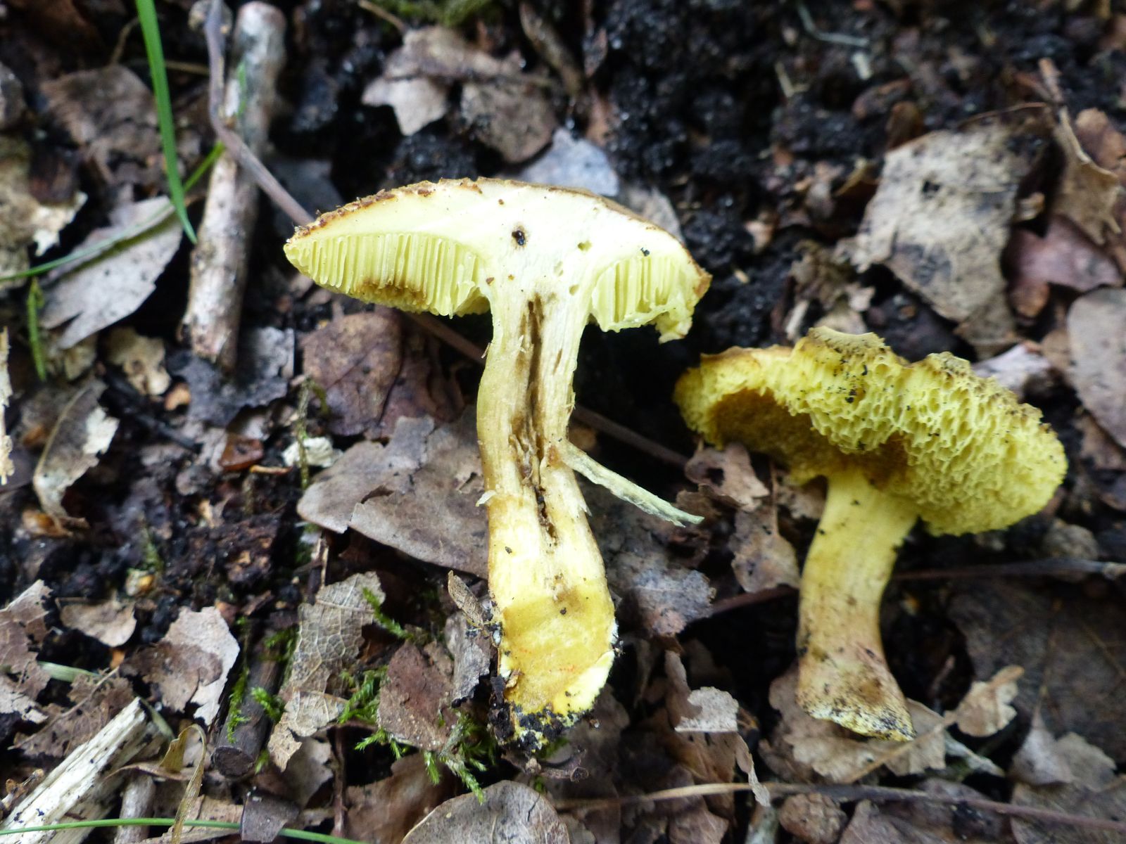 X. cisalpinus blaut meiner Erfahrung nach meist relativ schnell (zwischen 15 Sekunden und 2 Minuten) und hat zumeist rötliche Töne in den Rissen der Hutraut. H. engelii braucht oftmals über 2 Minuten (manchmal auch 5-10m) bis der einigermaßen großflächig blaut. Ist letztlich aber immer auch ein wenig vom Alter, dem Wetter etc. abhängig. Ausreißer gibt's immer, aber das sind so meine Beobachtungstendenzen.