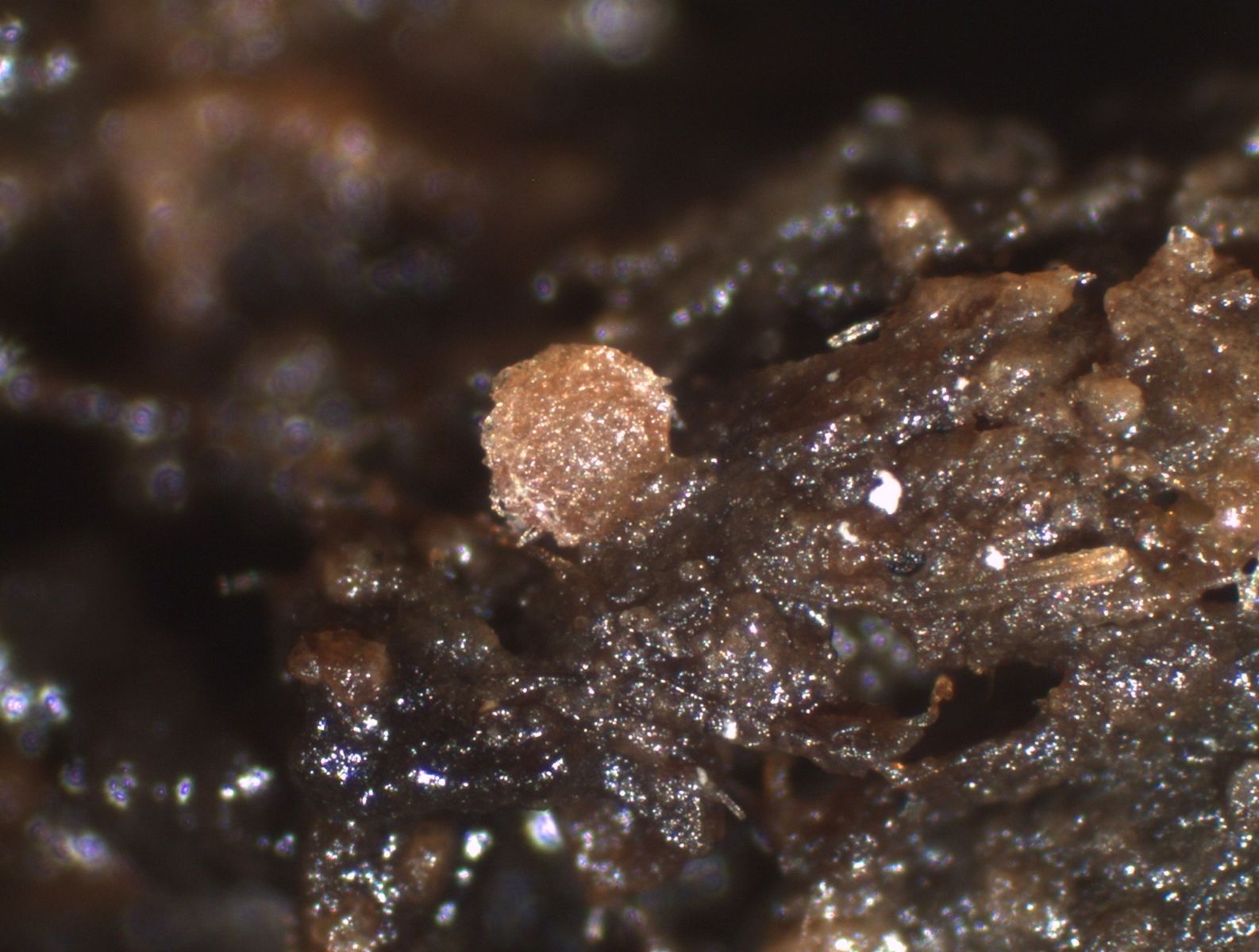 Wenn diese Strukturen Hyphen sein sollen, dann könnte es wohl eine Ascodesmis sein. Allerdings haben die Sporen ein Netz aus vielen