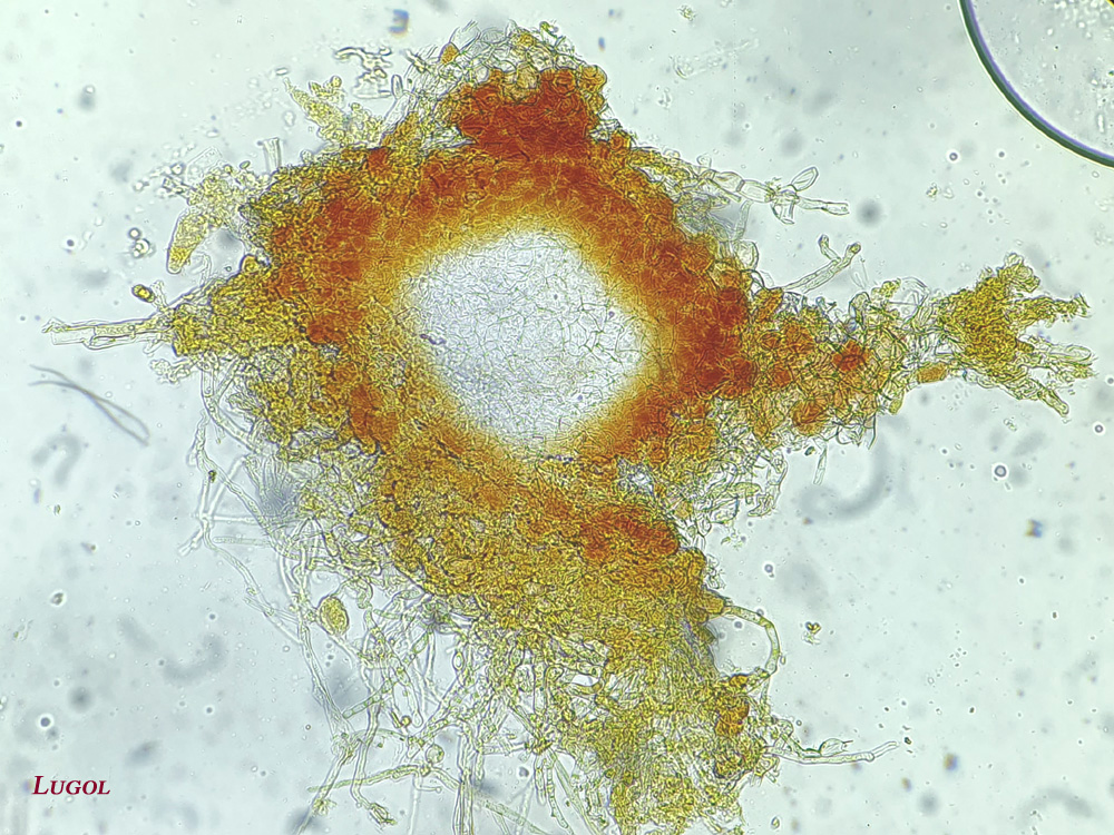 Das ektale Excipulum zeigt eine starke dextrinoide Reaktion auf Lugol.