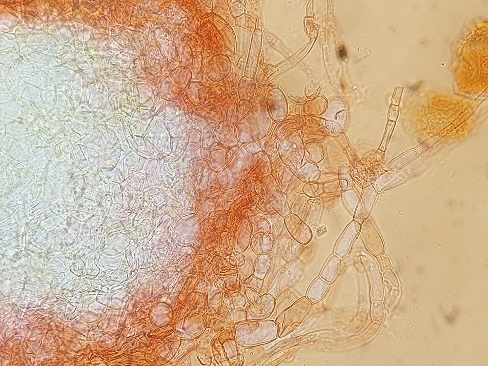 Subhymenium aus kleinen, rundlichen bis eckigen Zellen.